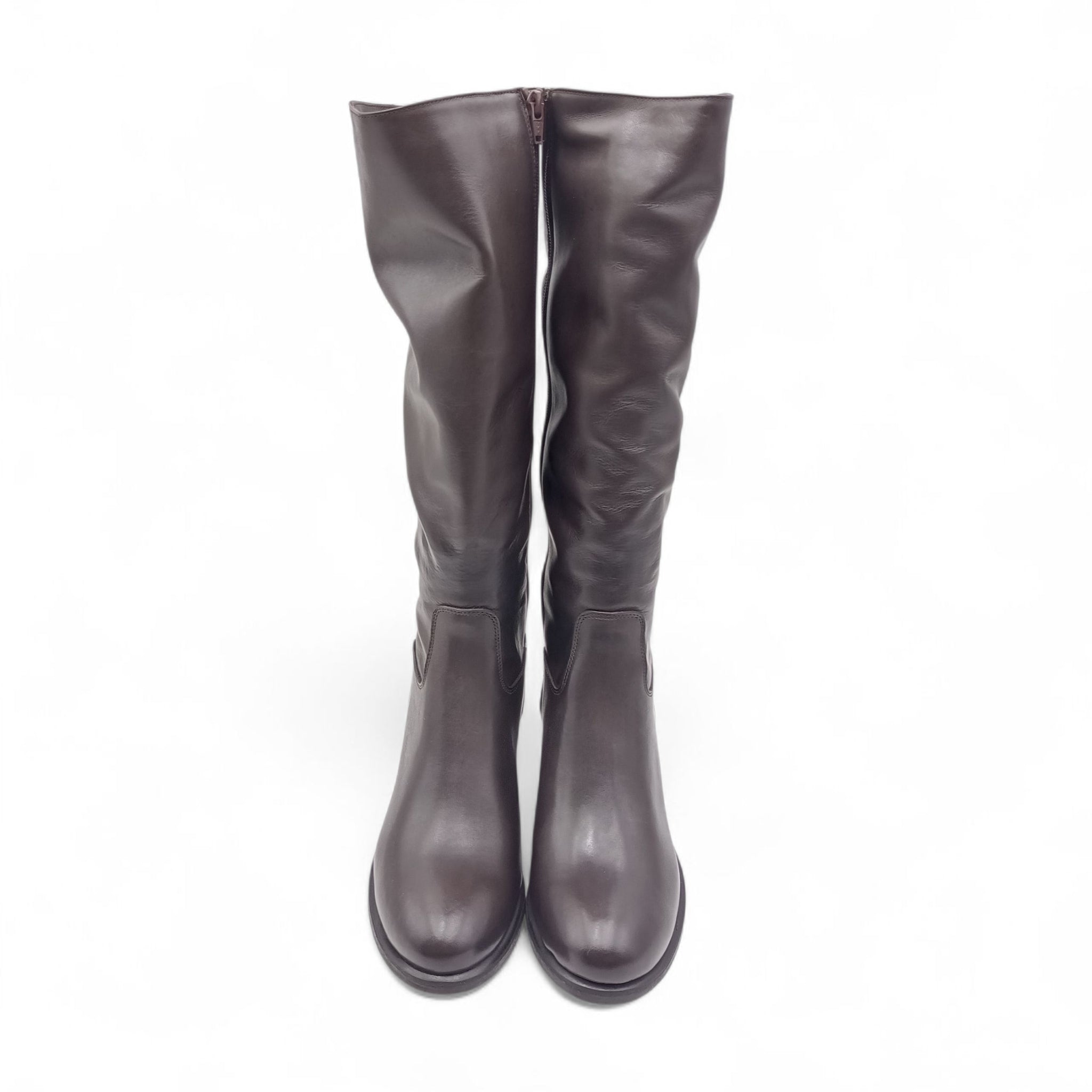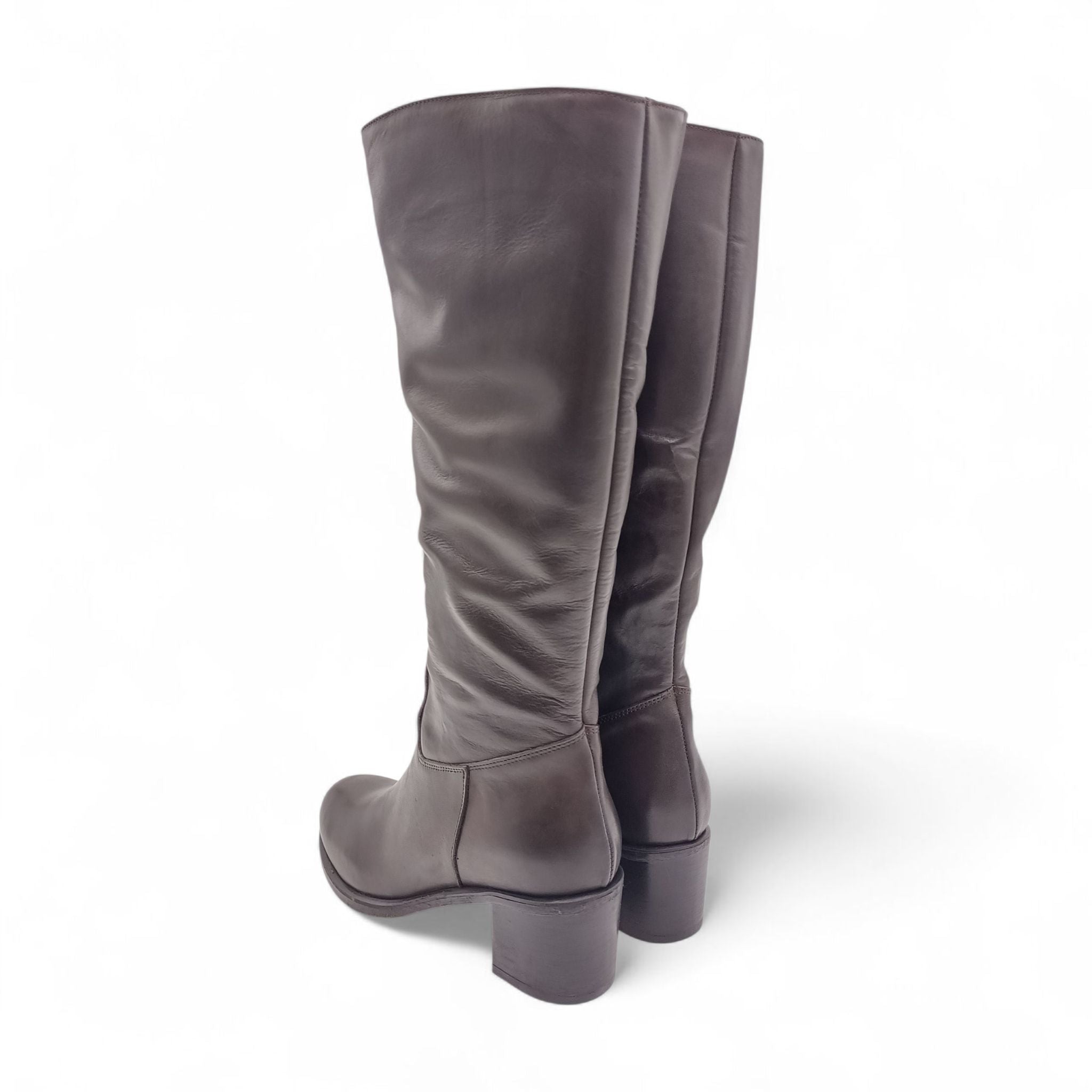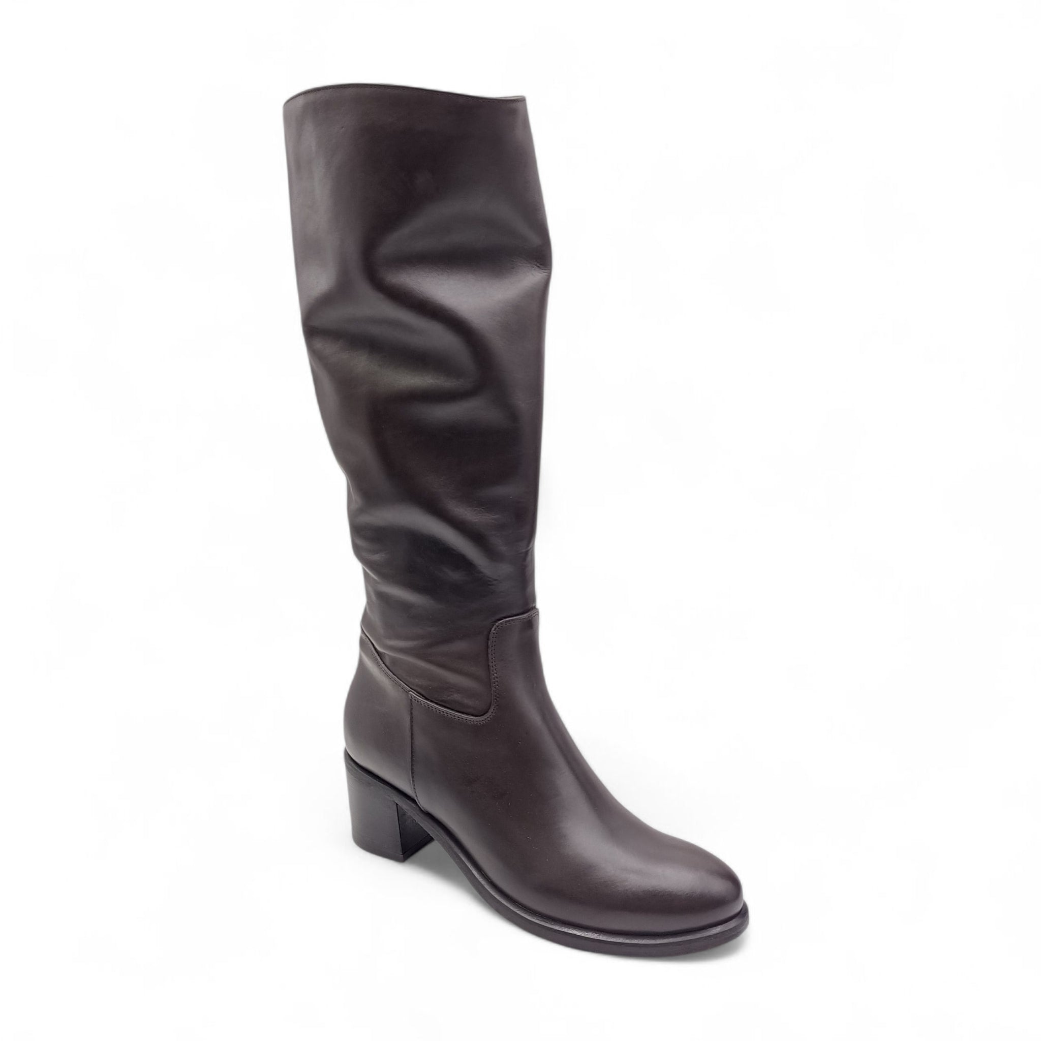 Stivale donna in pelle t.moro con tacco quadrato e cerniera laterale Esther Collezioni 5051