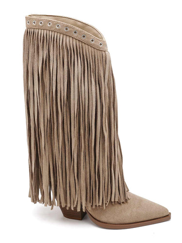 Stivale “BELLY” – Western in camoscio con frange