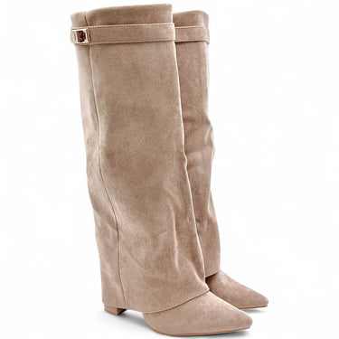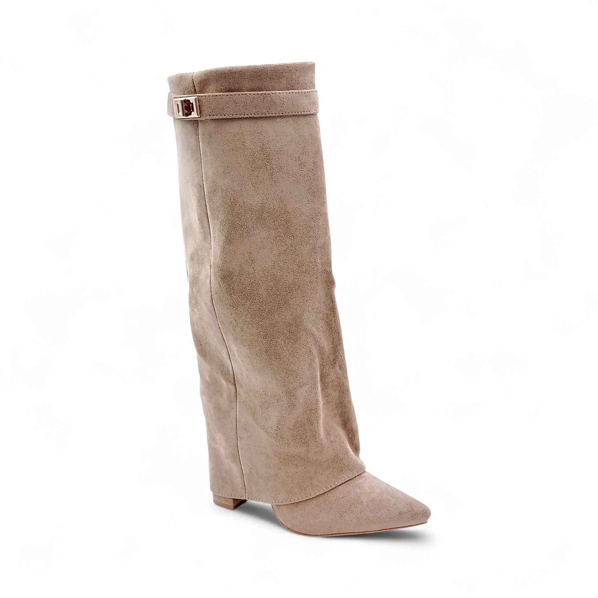Stivale elegante in tessuto scamosciato, color khaki/beige ... uno dei più gettonati della stagione!