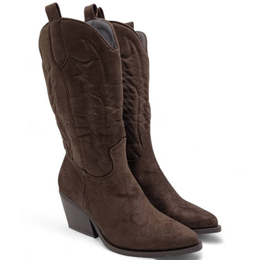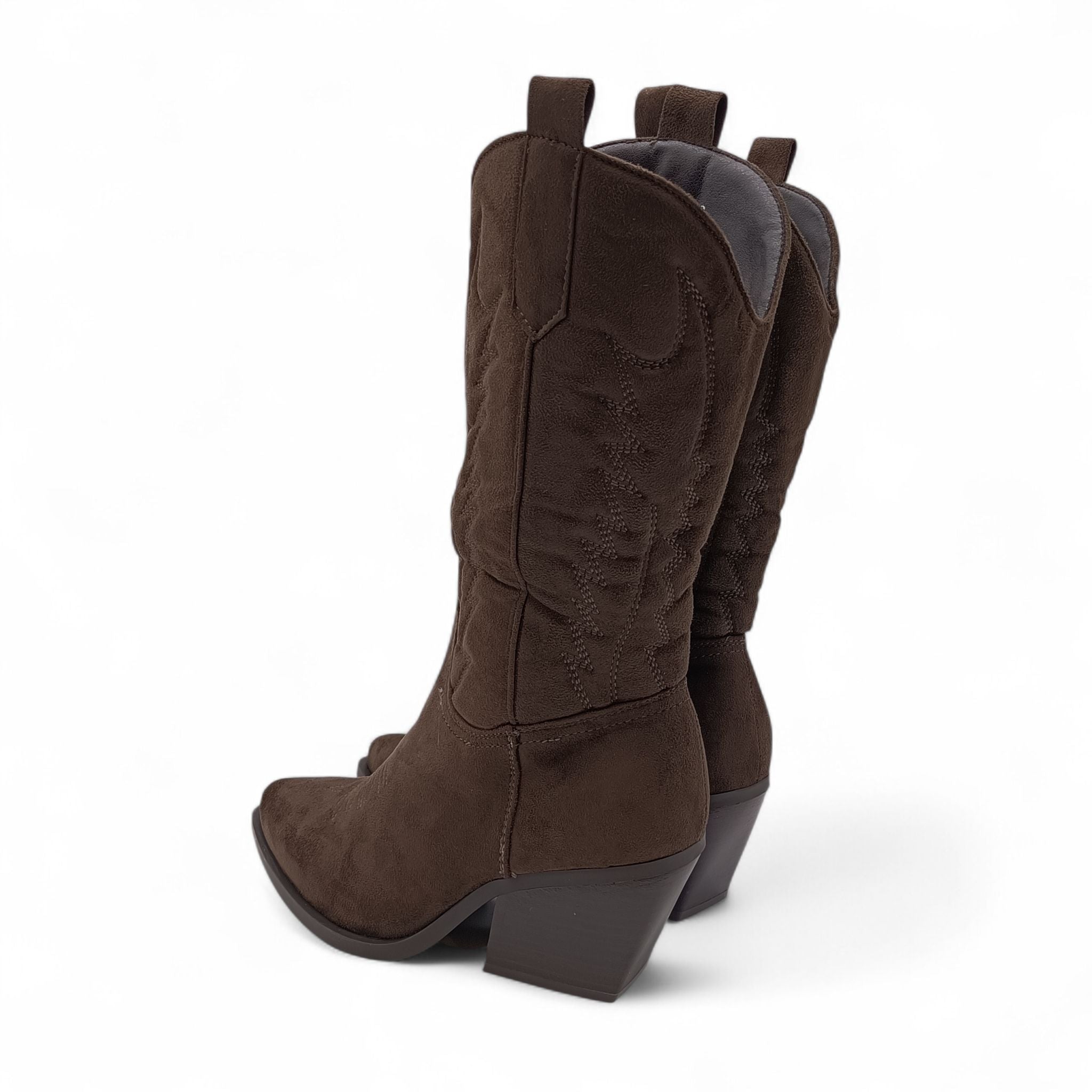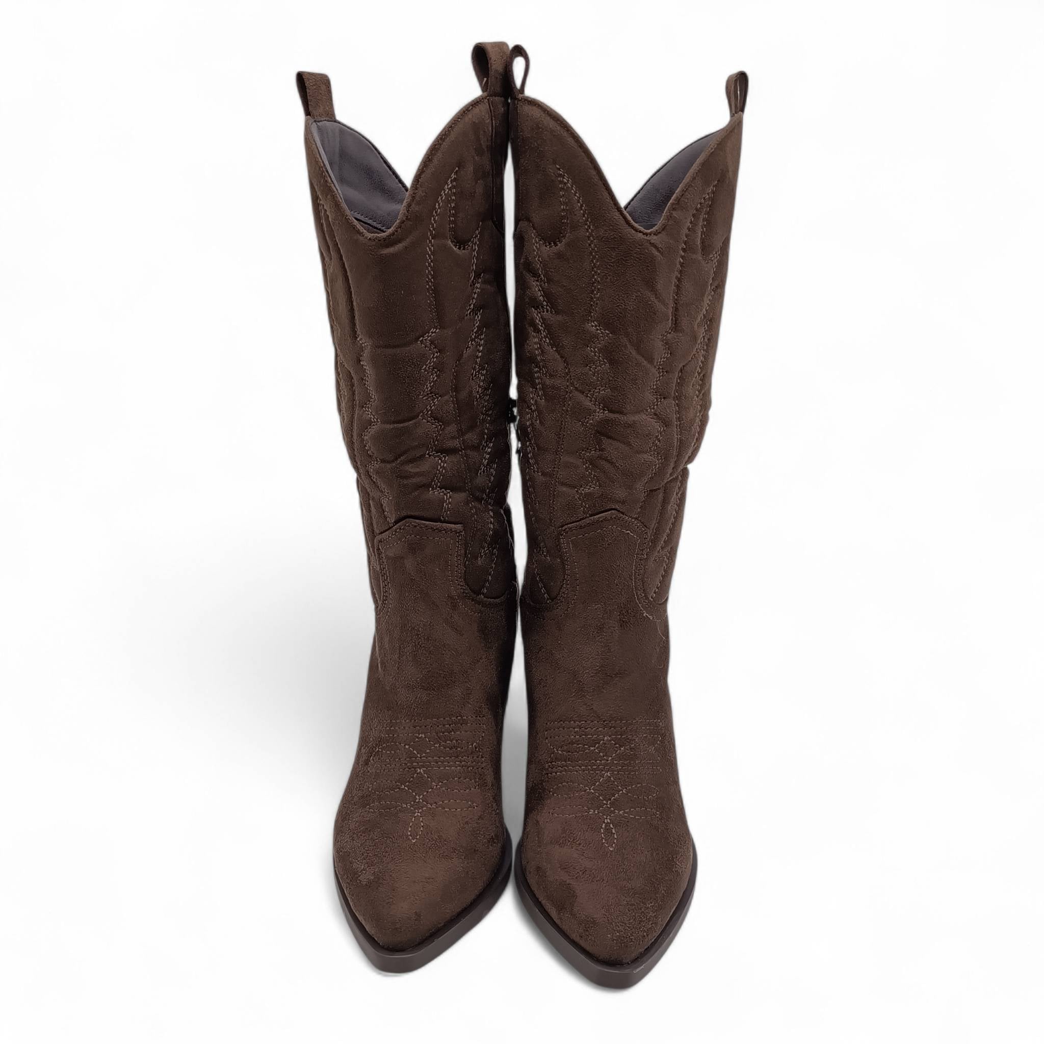 stivali texani donna in tessuto scamosciato marrone King of Hearts J36
