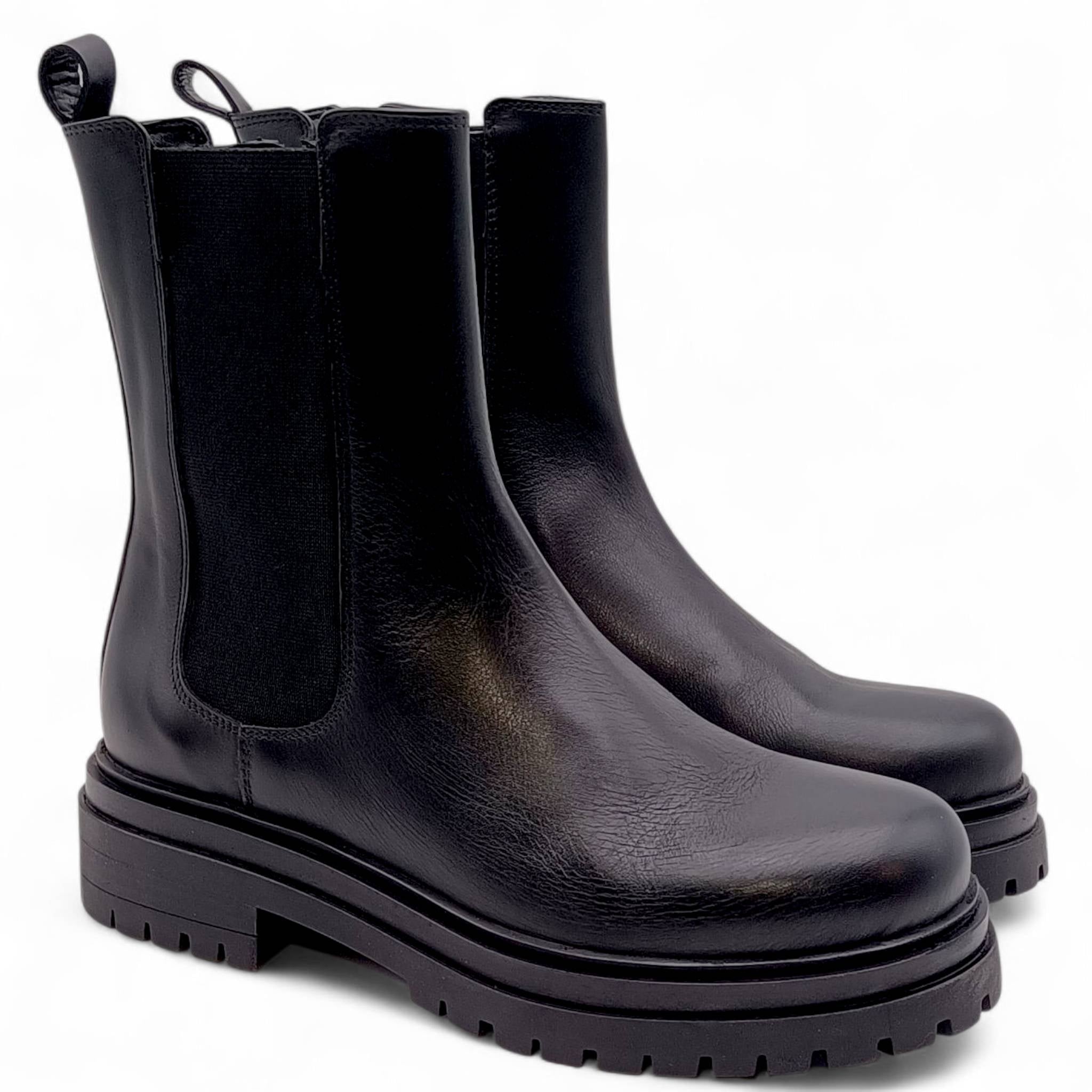 Beatles donna in vera pelle con elastici laterali e suola carrarmato.