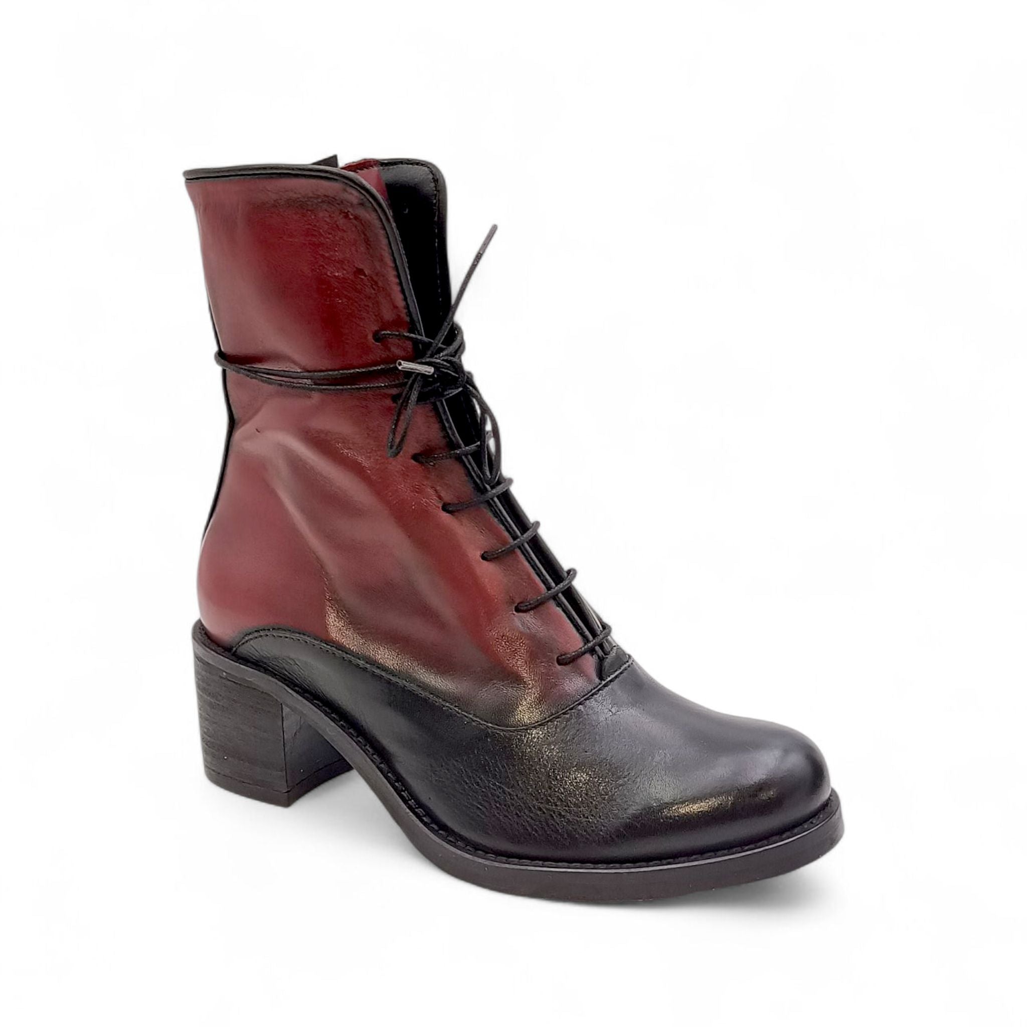 Stivaletto bicolore con tacco in pelle nera/vino Sinapsi VIENNA 02