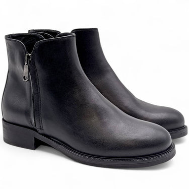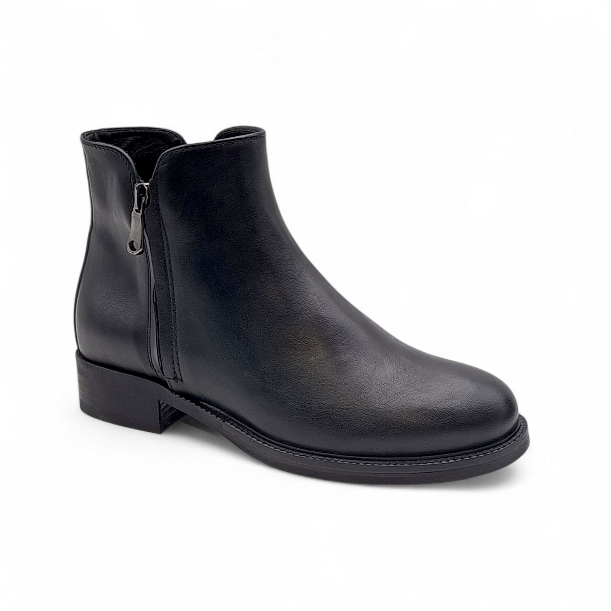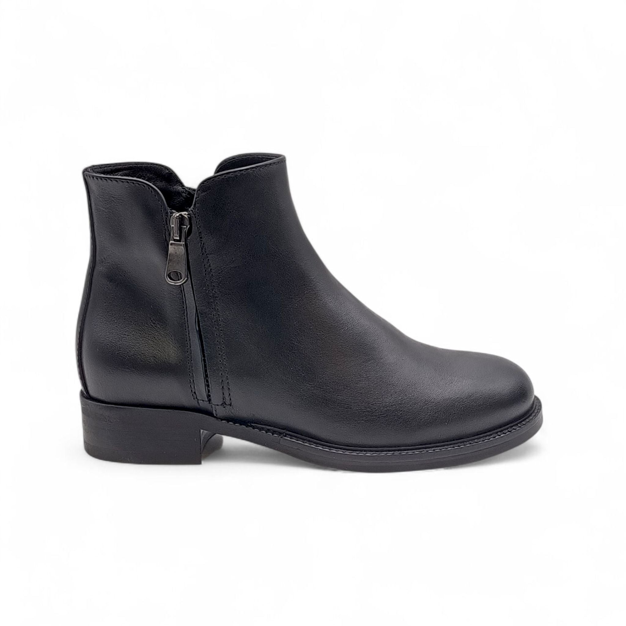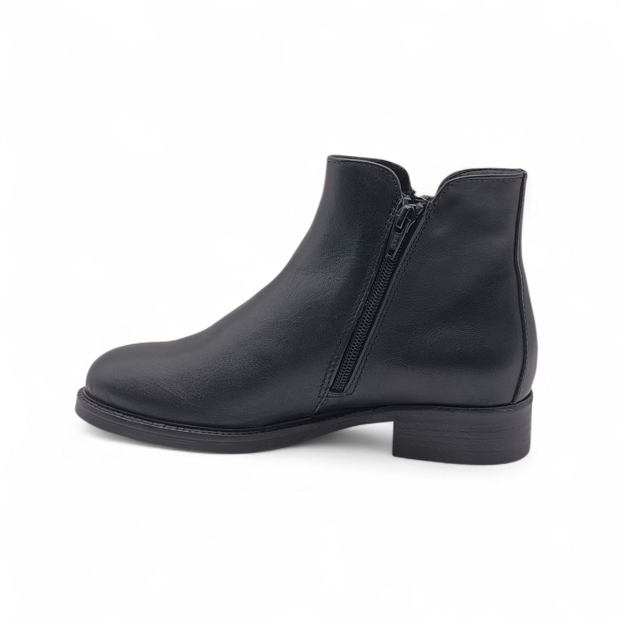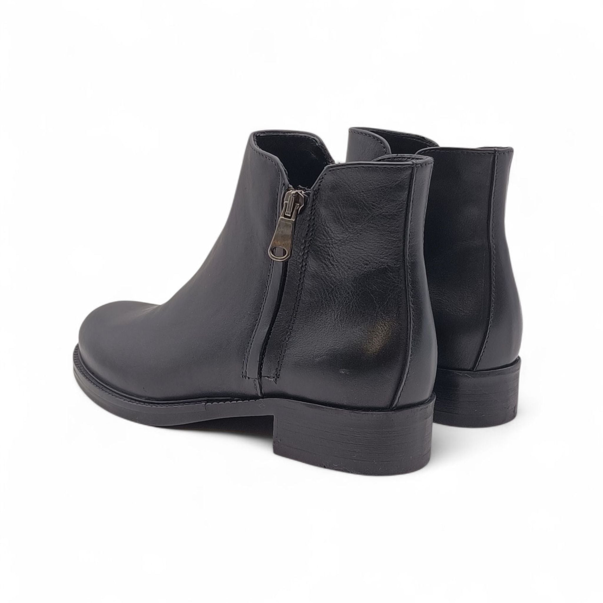 Stivaletto in pelle nera dotato di due cerniere laterali che facilitano la calzata.