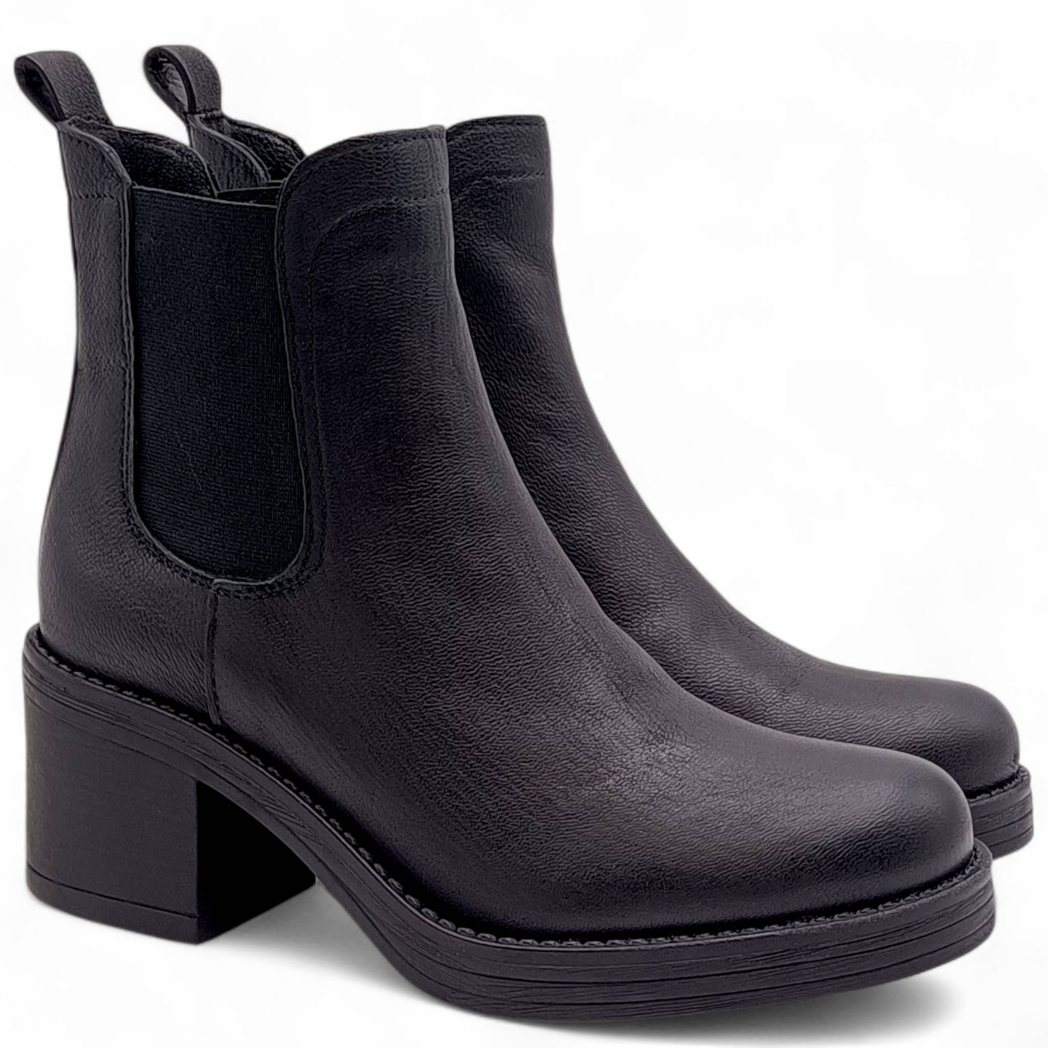 Stivaletti donna in pelle nera con tacco Lux 6560