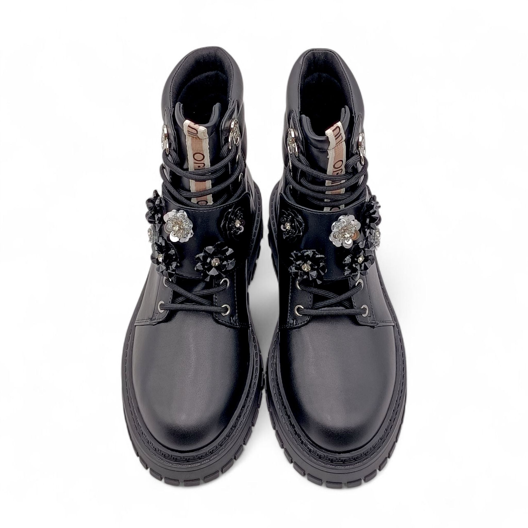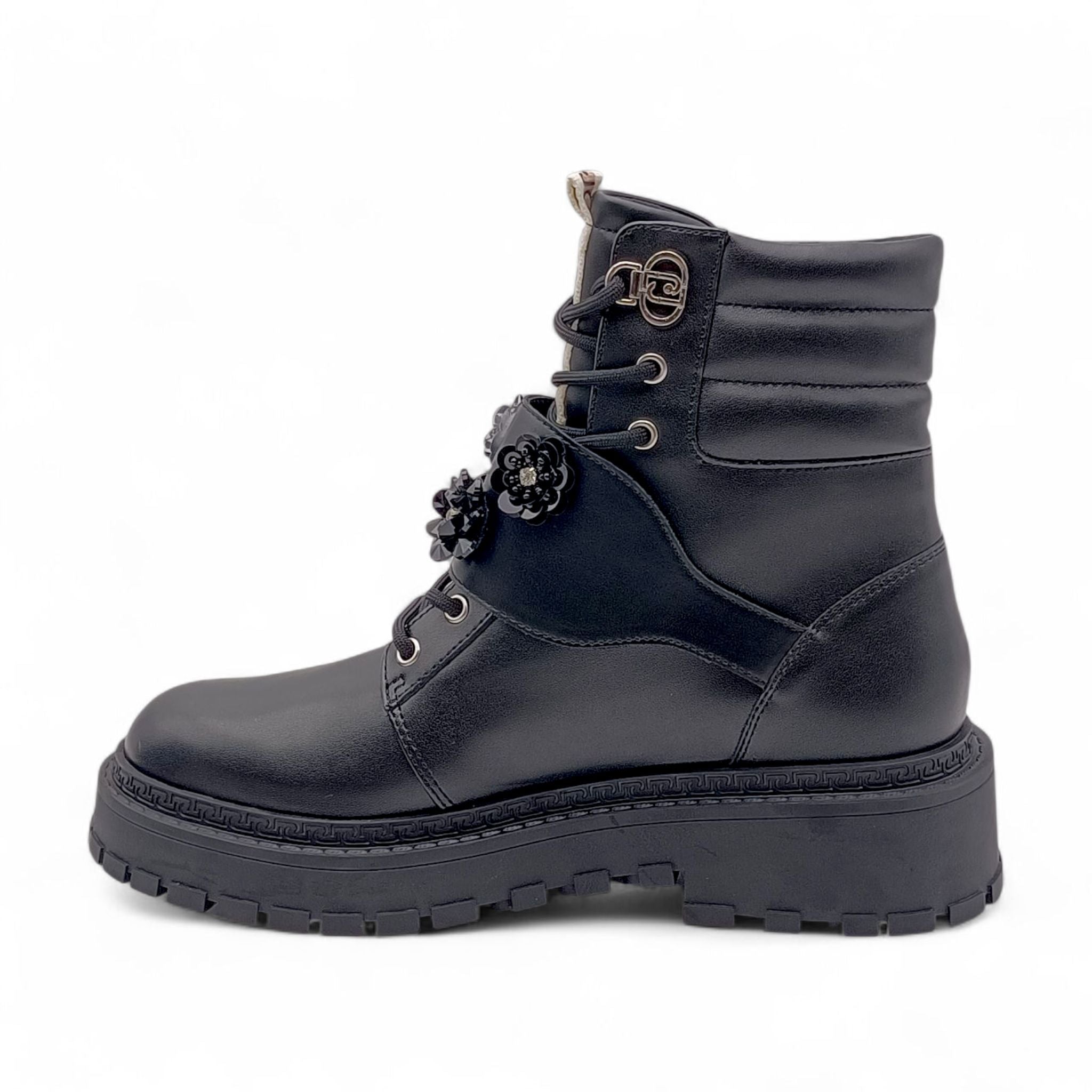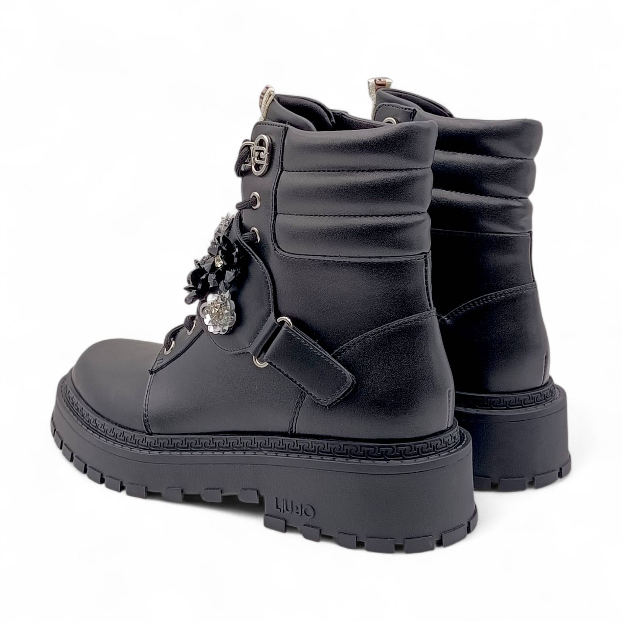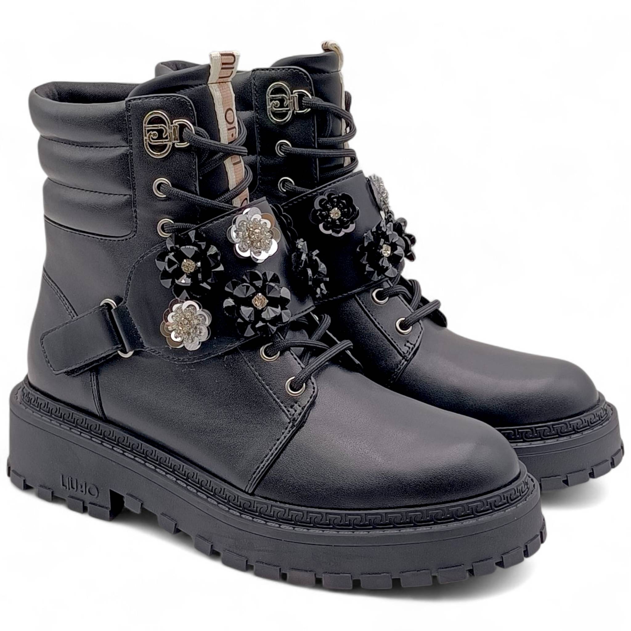 Anfibi LiuJo in pelle nera con applicazioni floreali luminose!