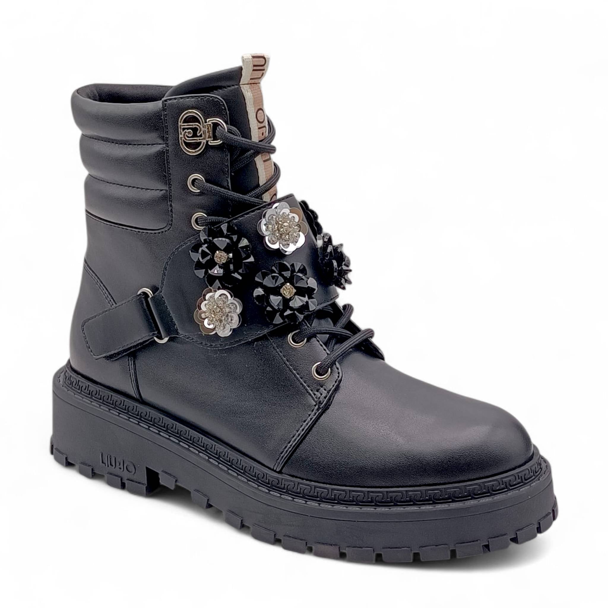 Anfibio donna liu jo in pelle nera con fiori decorativi RUMI 40