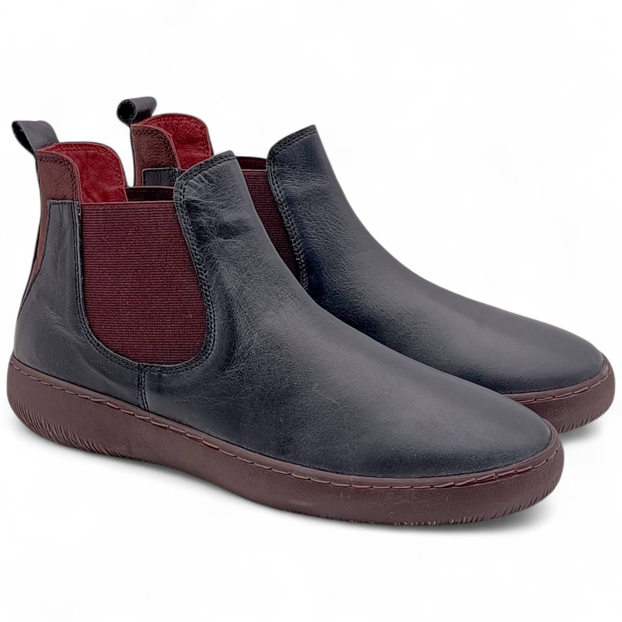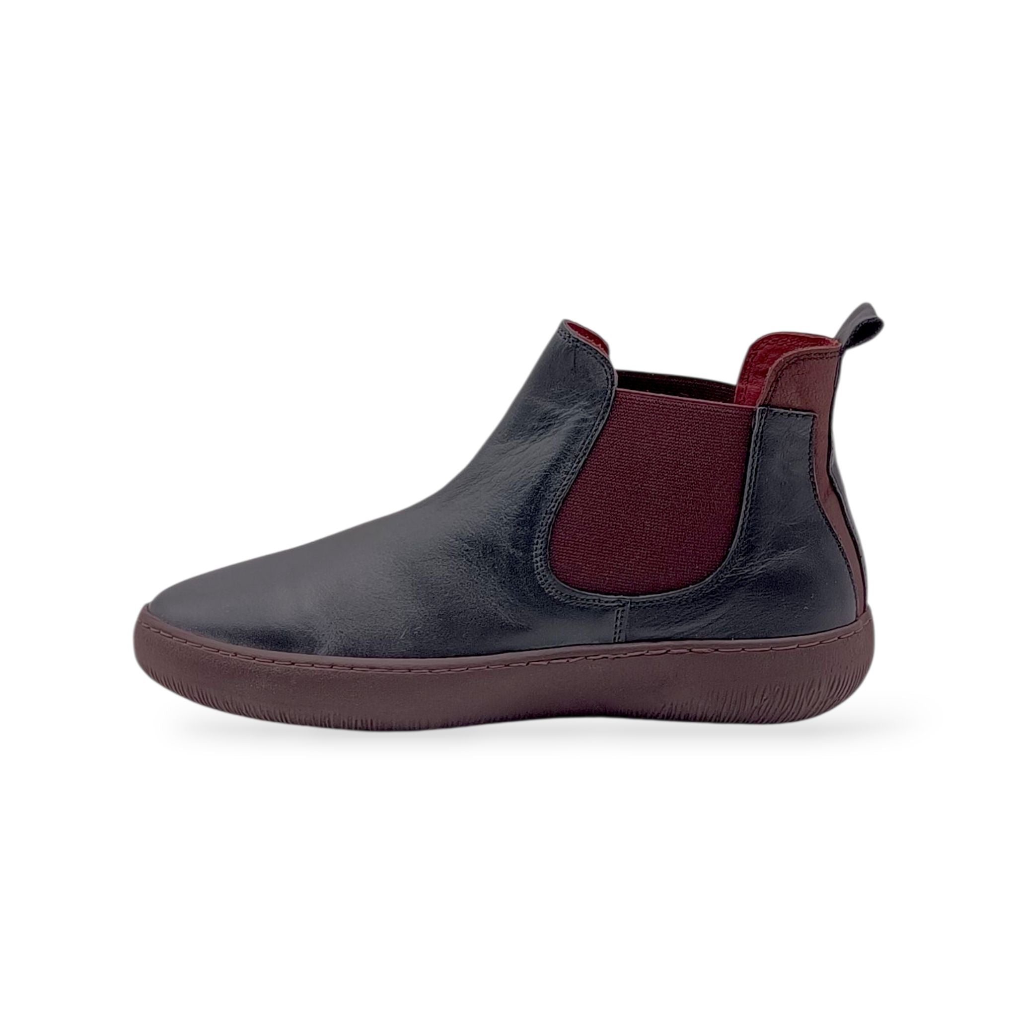 Beatles donna in pelle nera con elastico laterale bordeaux Grunland IMOD PO1854 K4