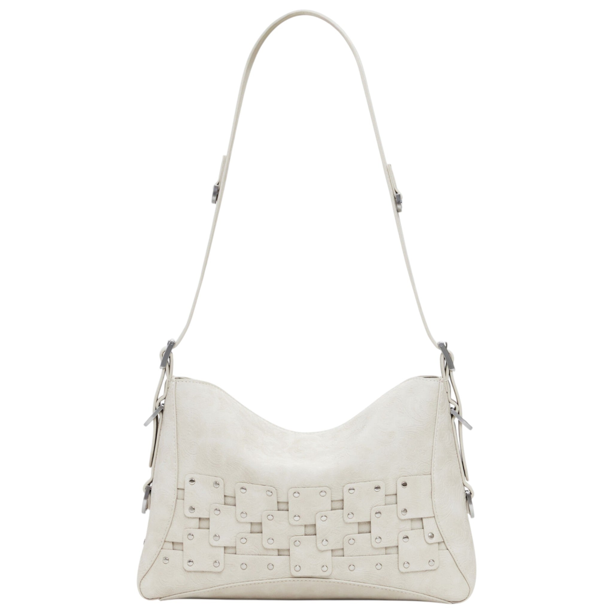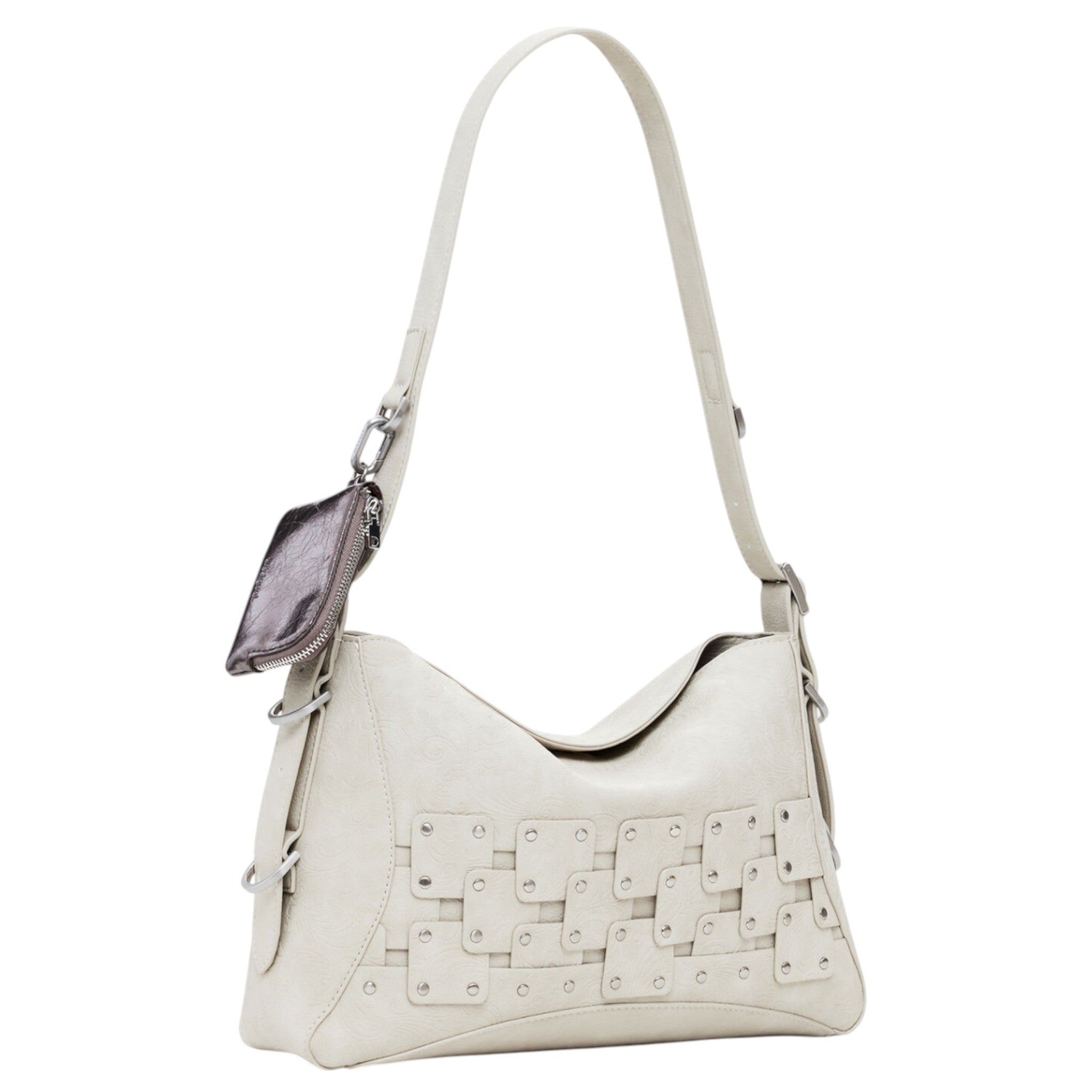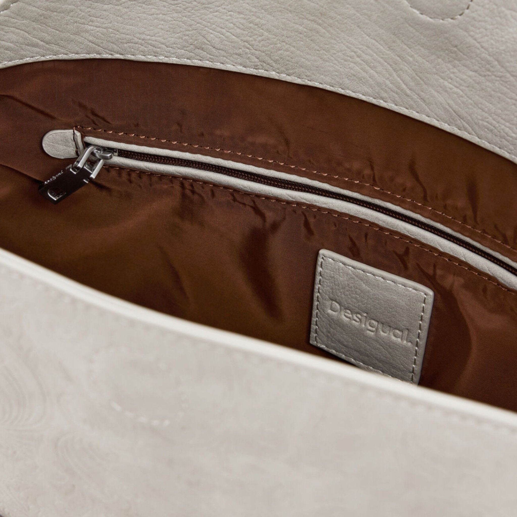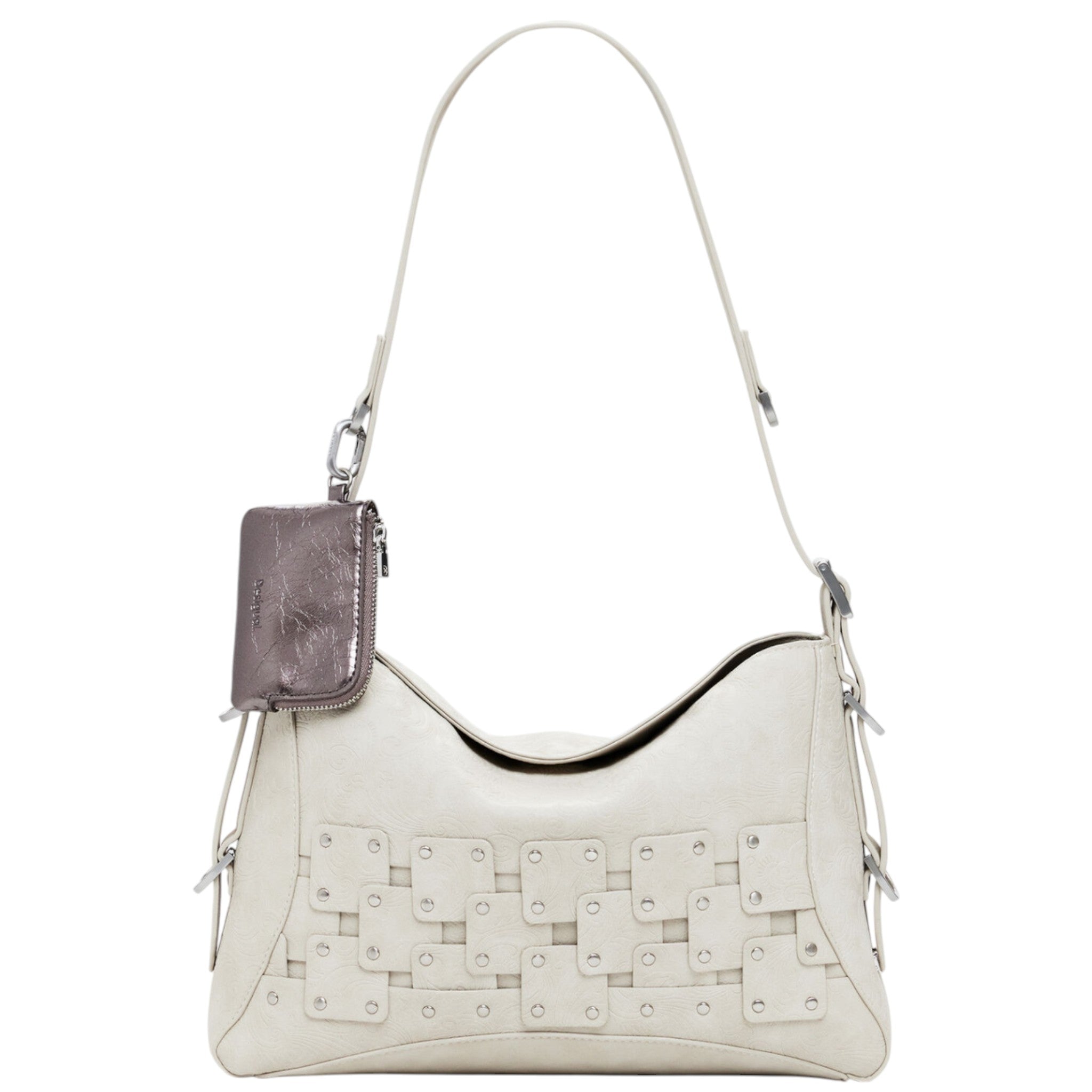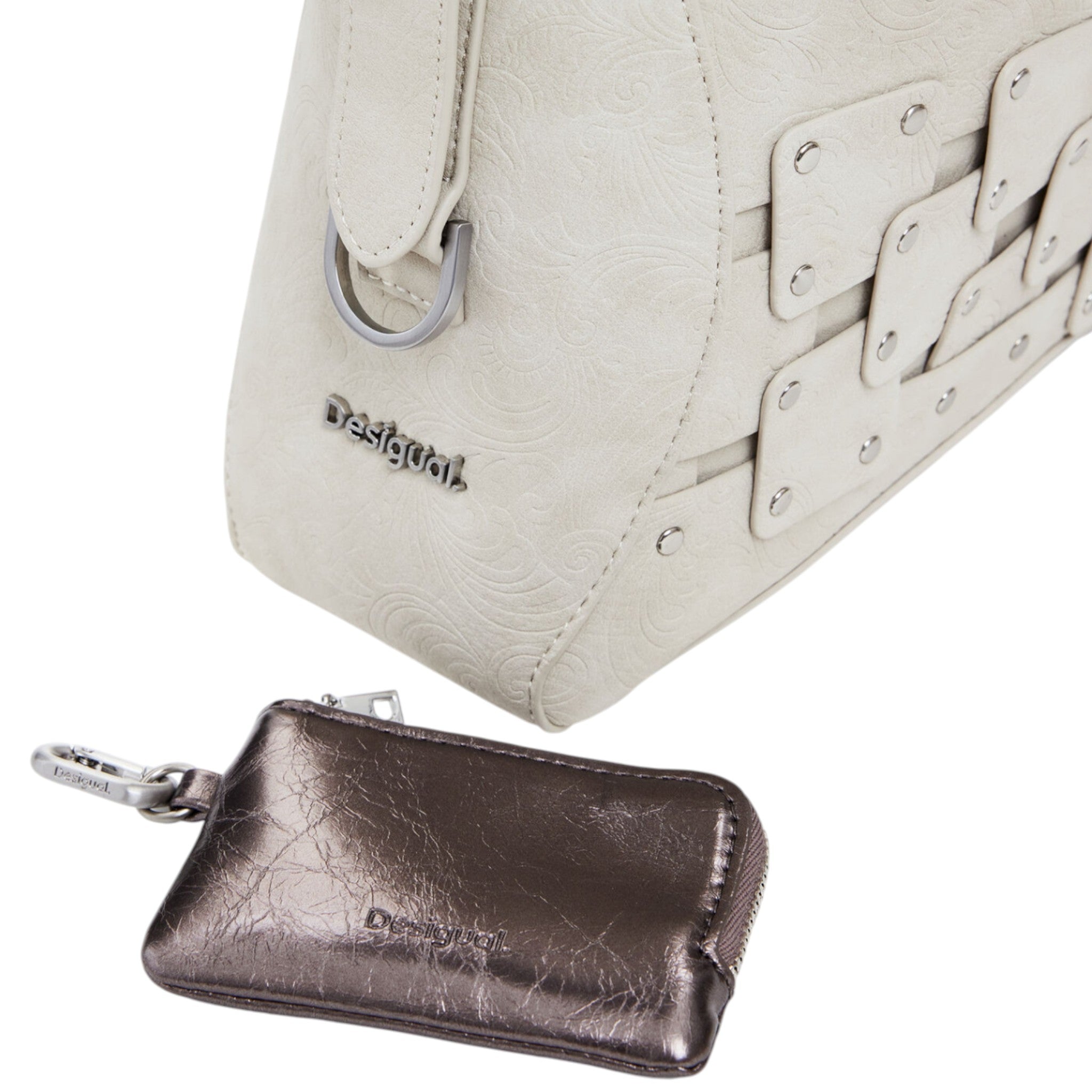 Lasciati conquistare dal carisma unico di Desigual con questa borsa a mano patchwork in effetto pelle bianca.