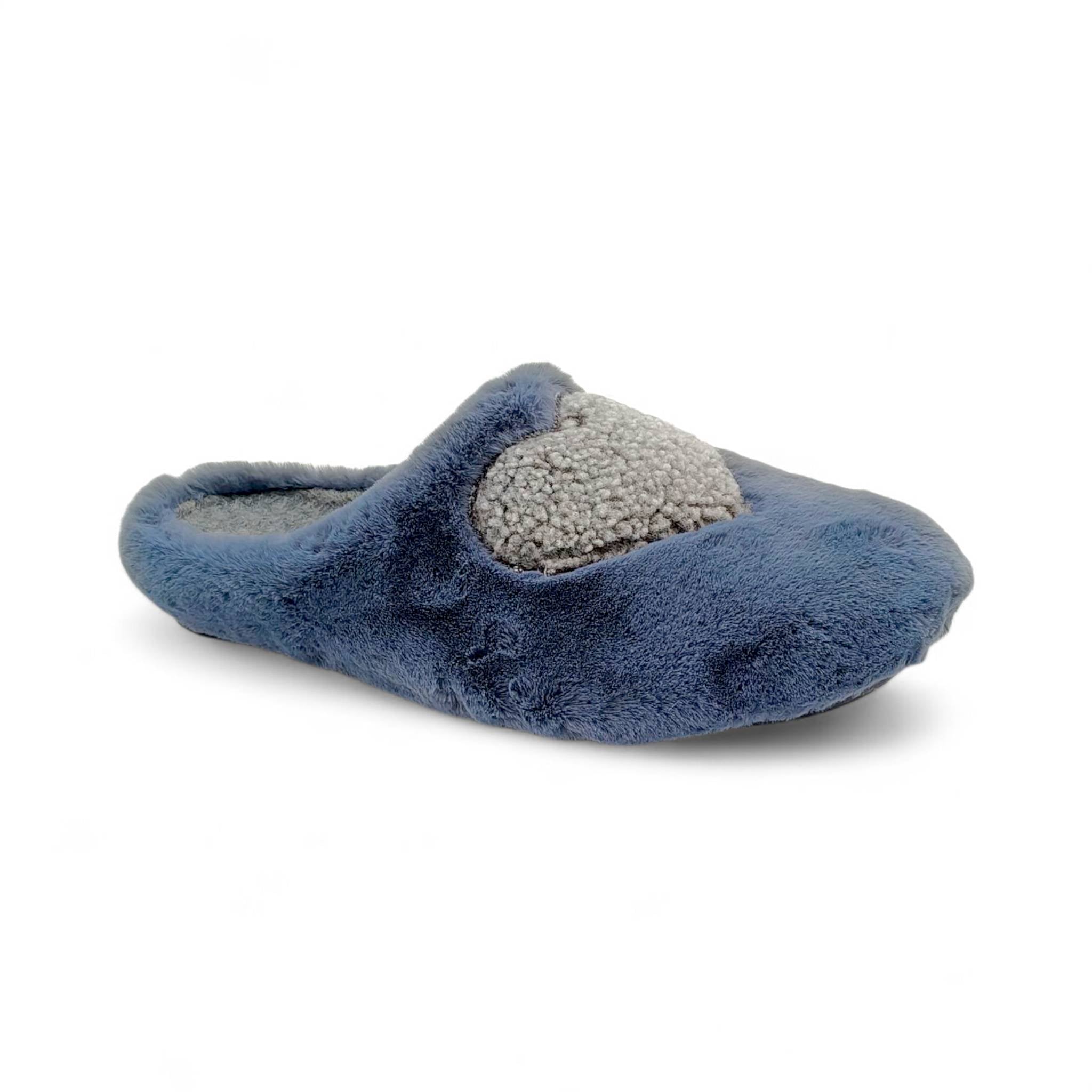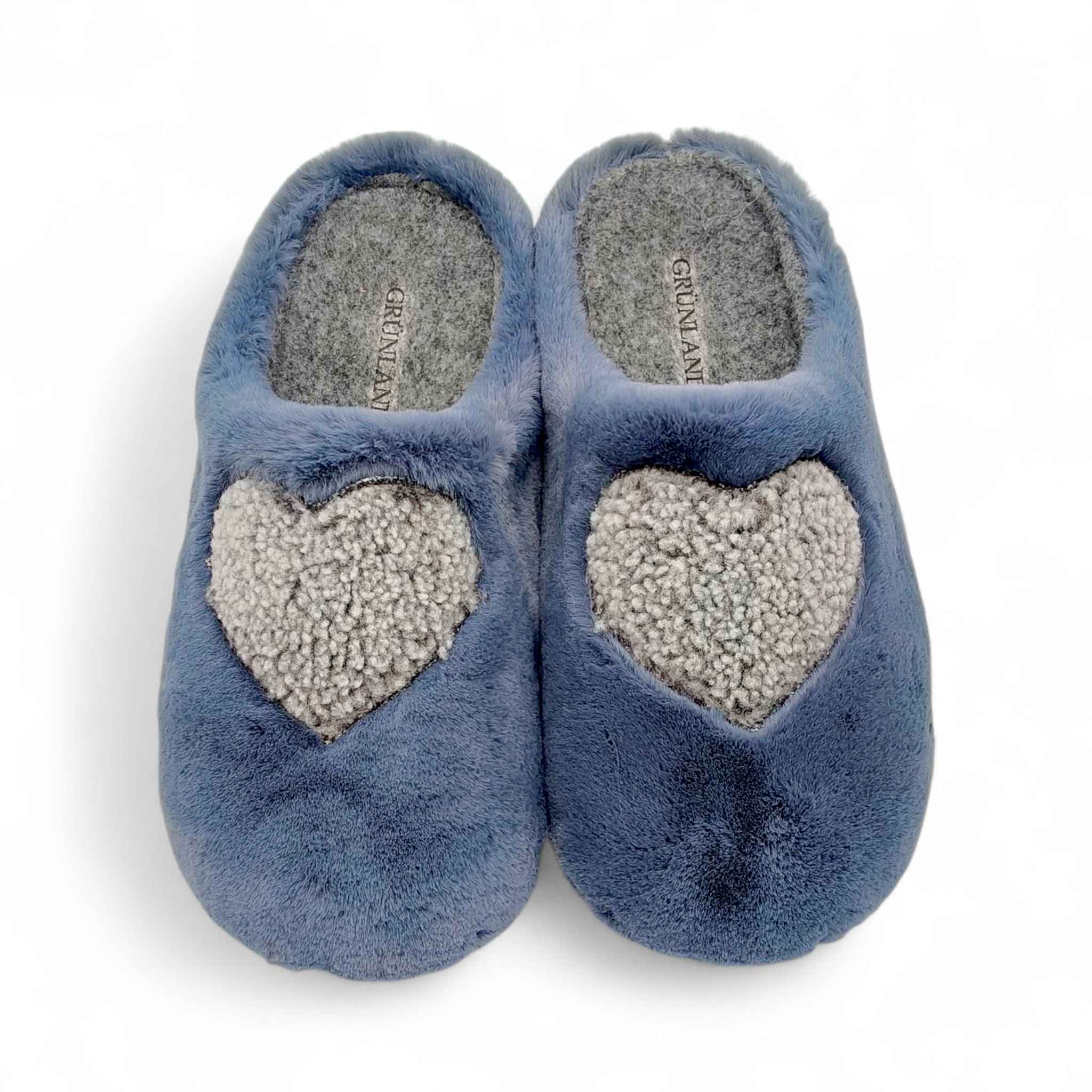 Ciabatta donna in morbido pelo blu con cuore teddy Grunland FAYE CI3058 B5