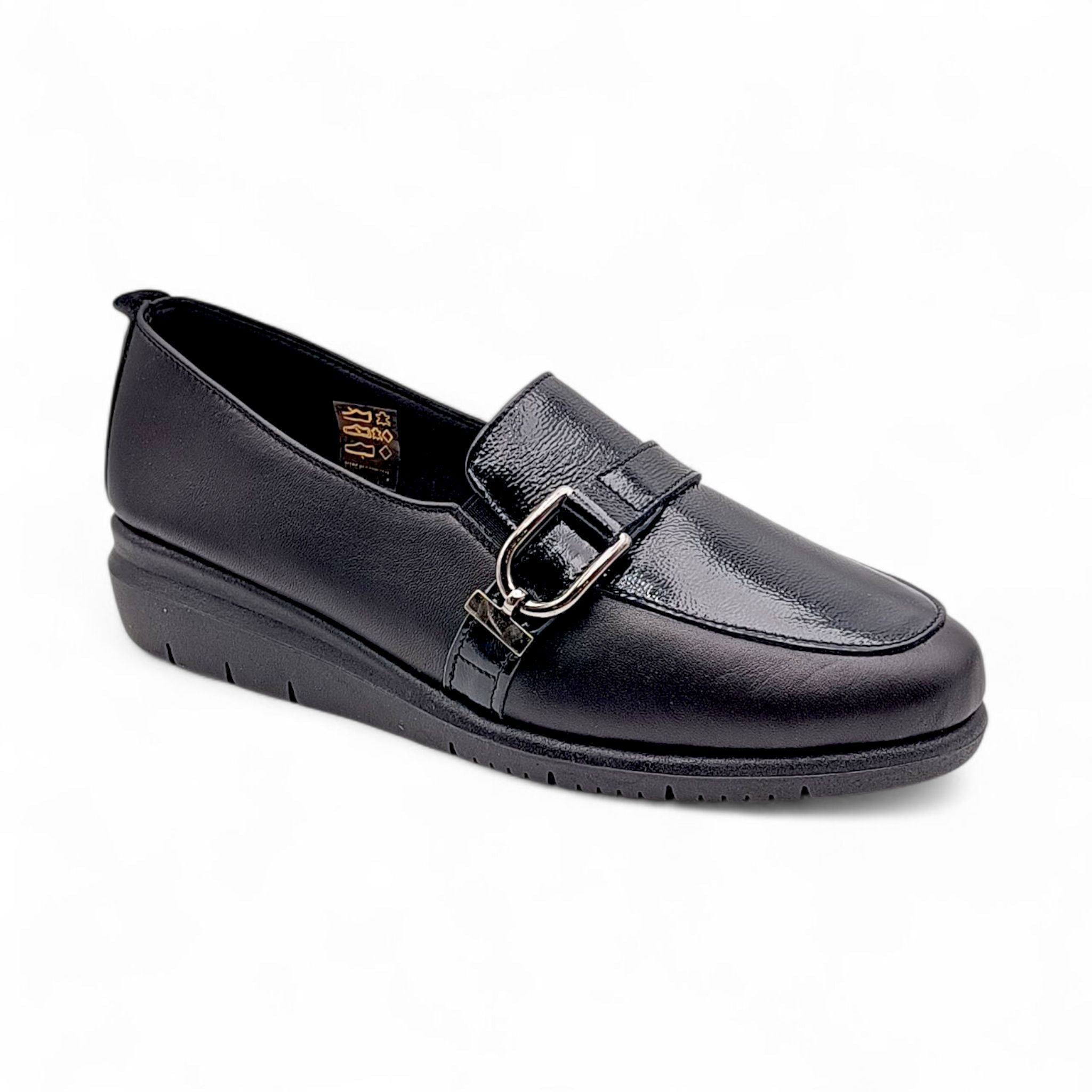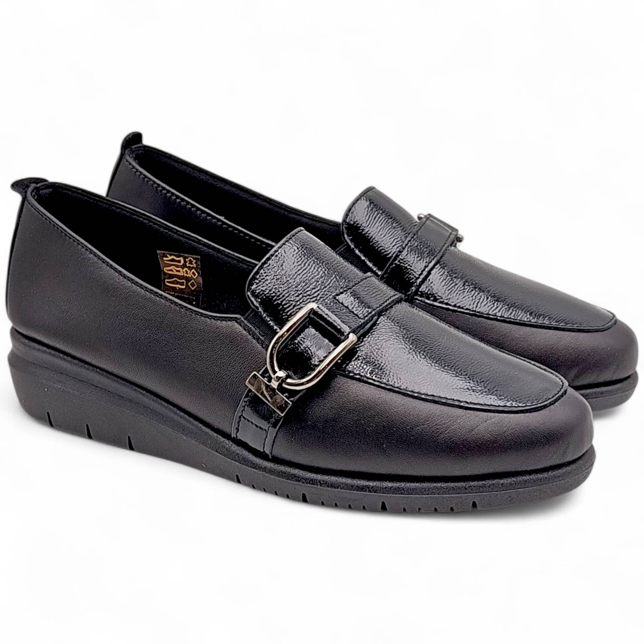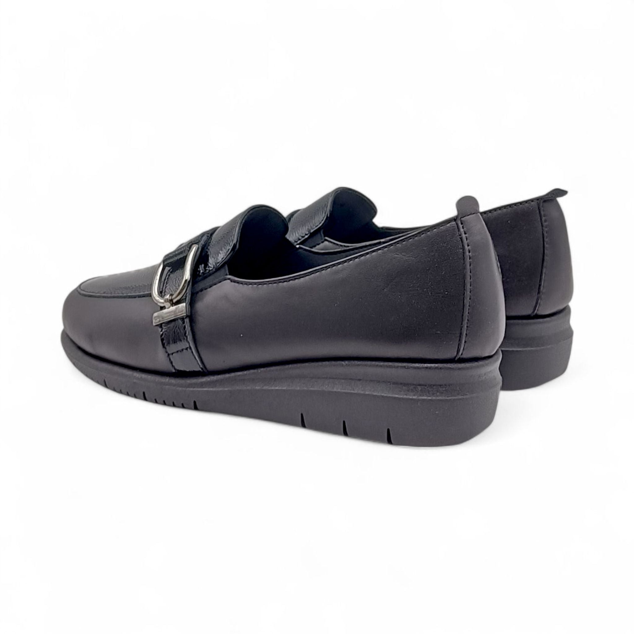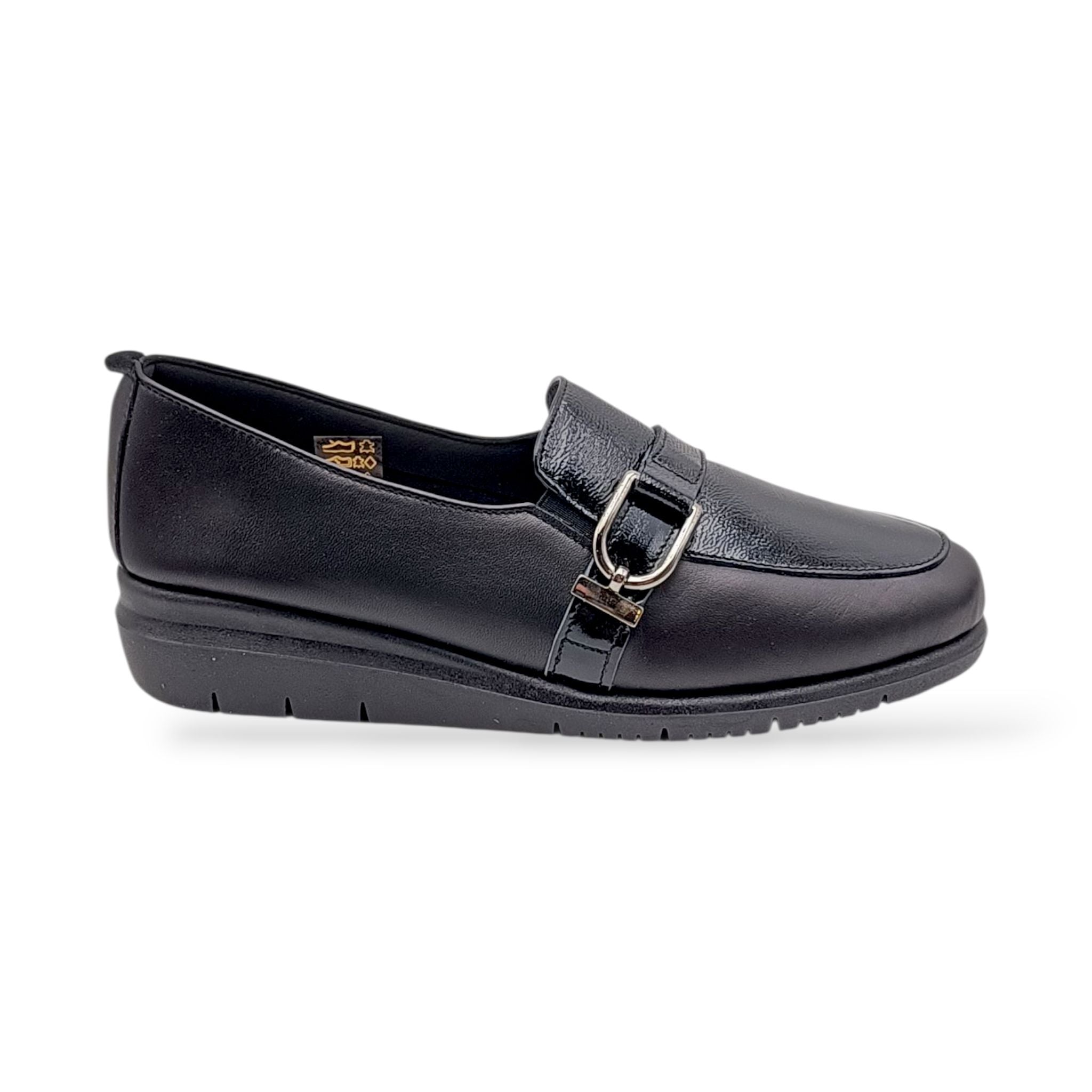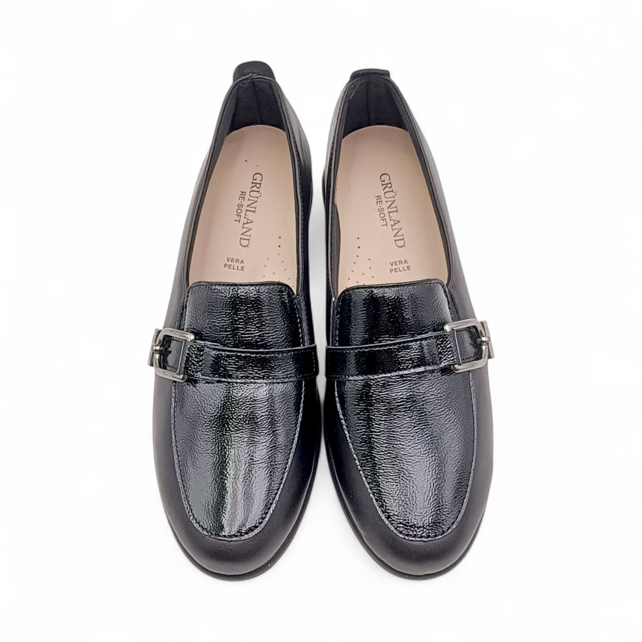 Mocassino donna con zeppa in pelle nera Grunland Rysa SC6108 25