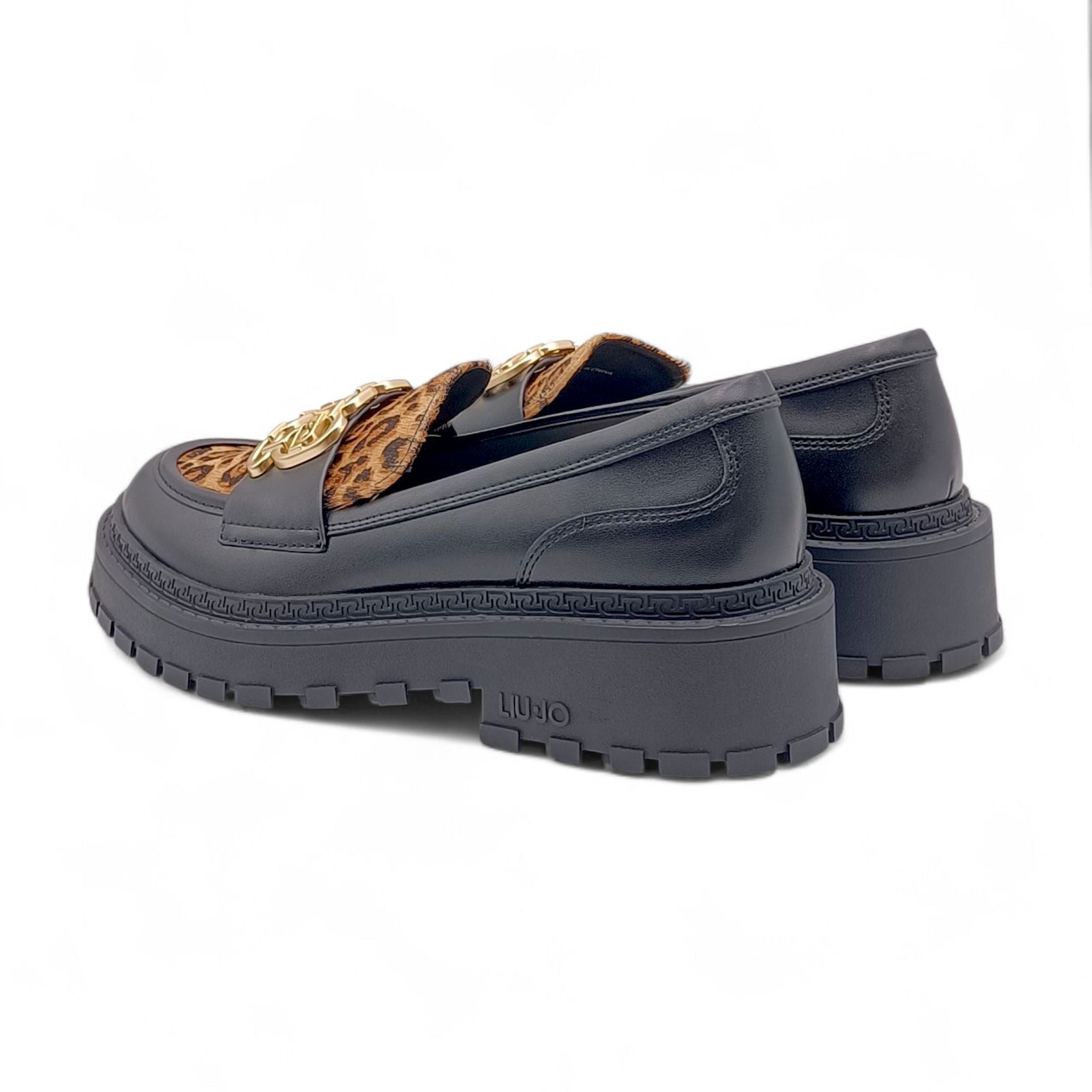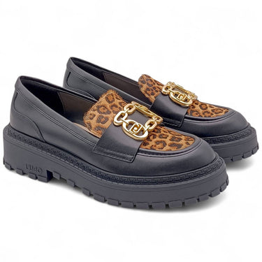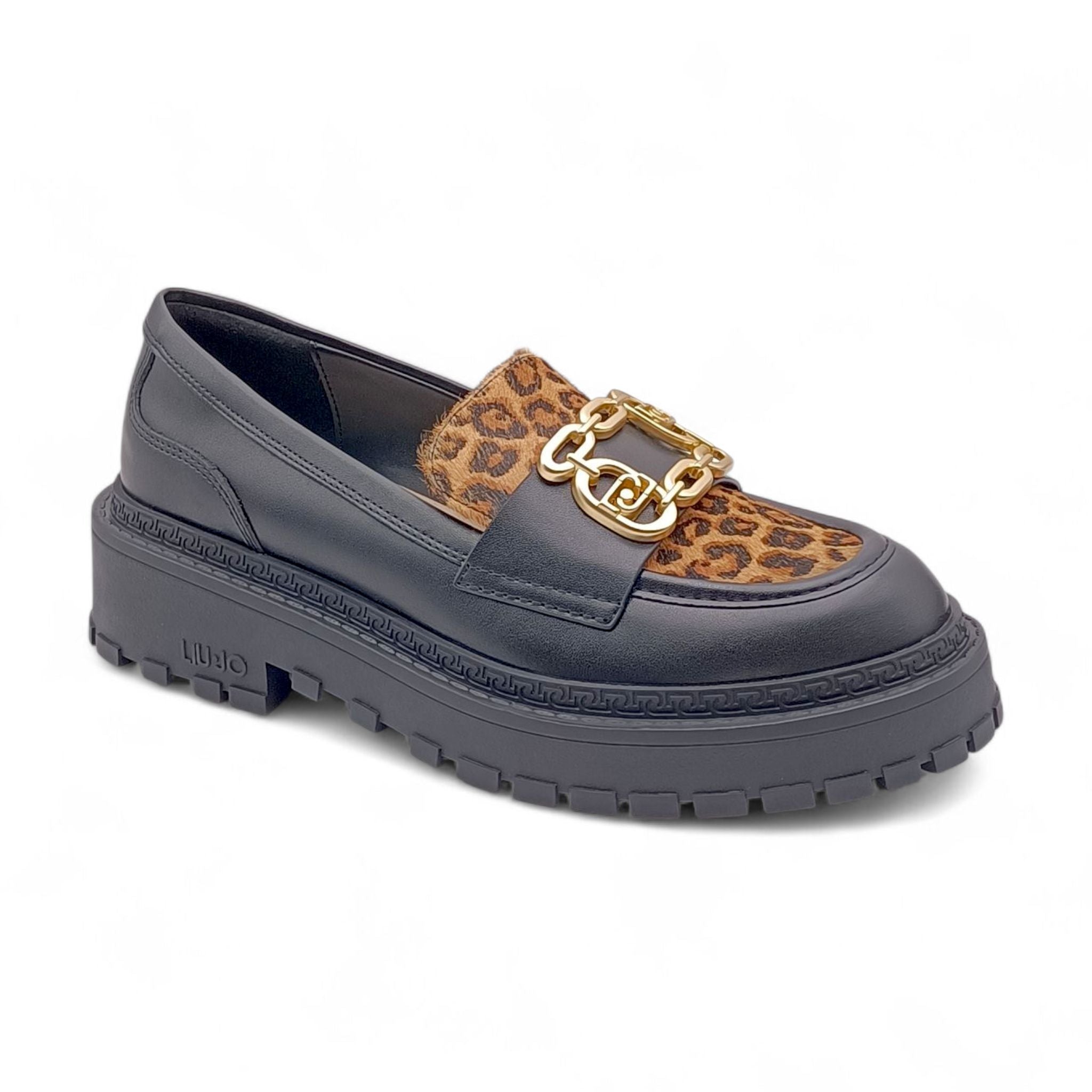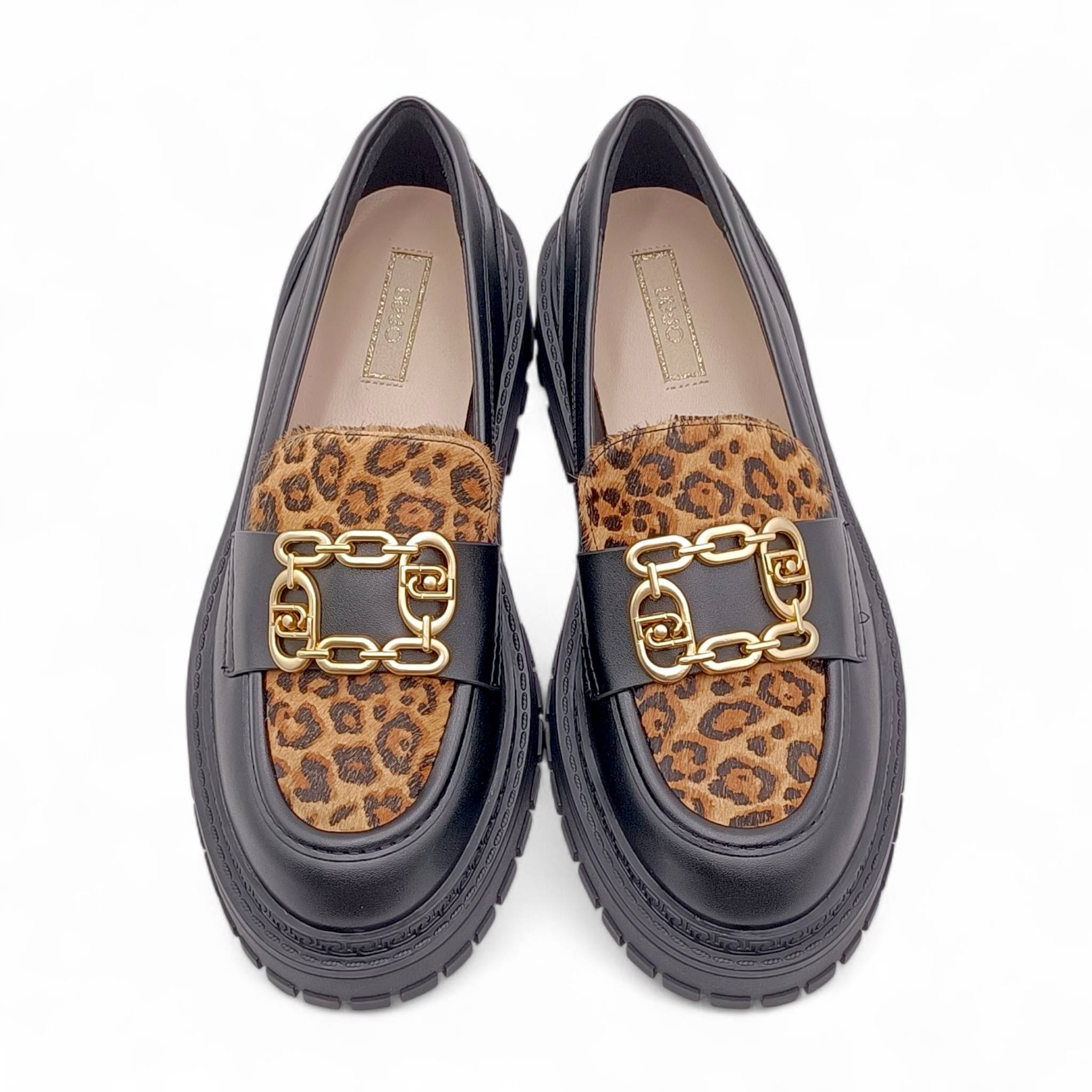 Mocassino donna liu jo in pelle nera e cavallino leopardato RUMI 34