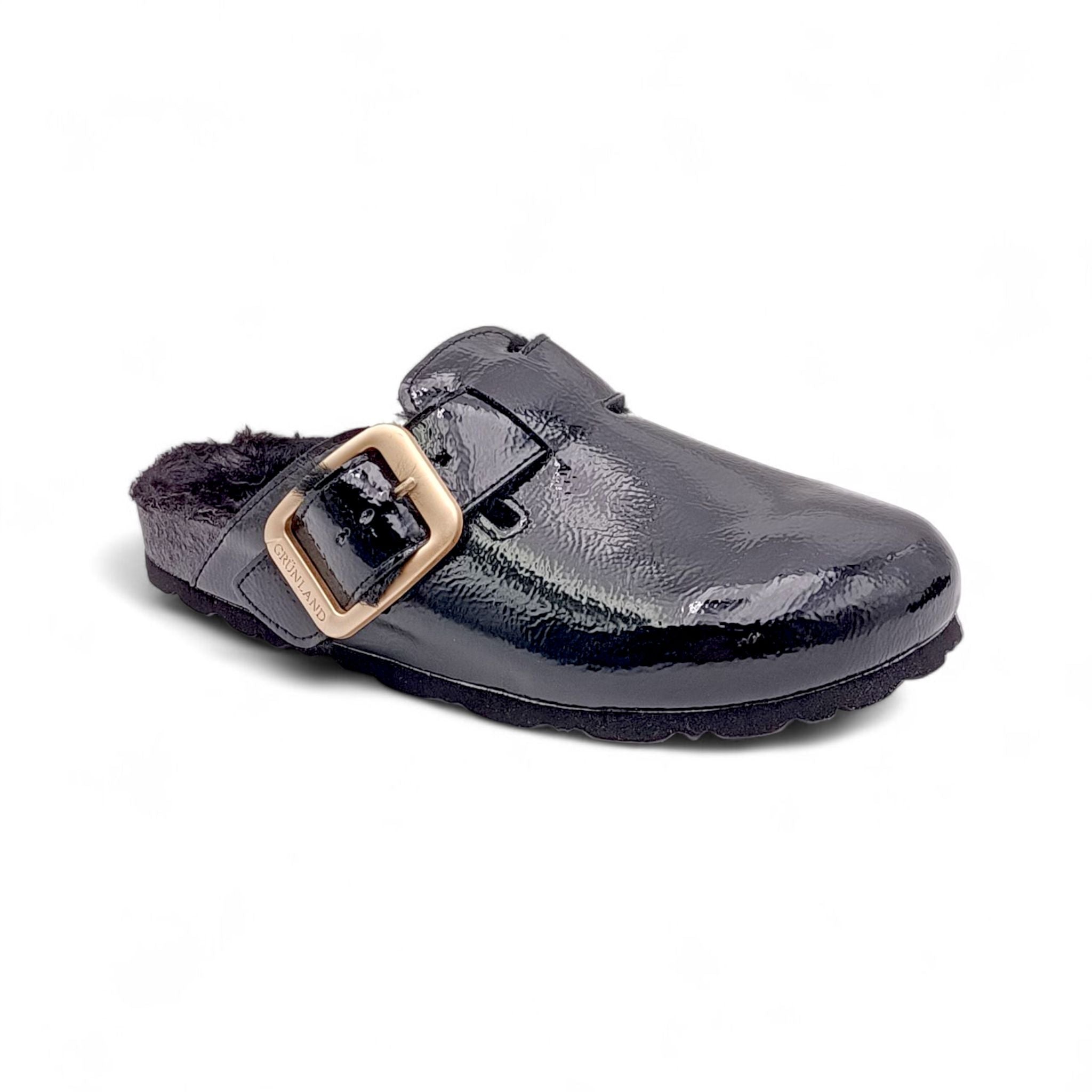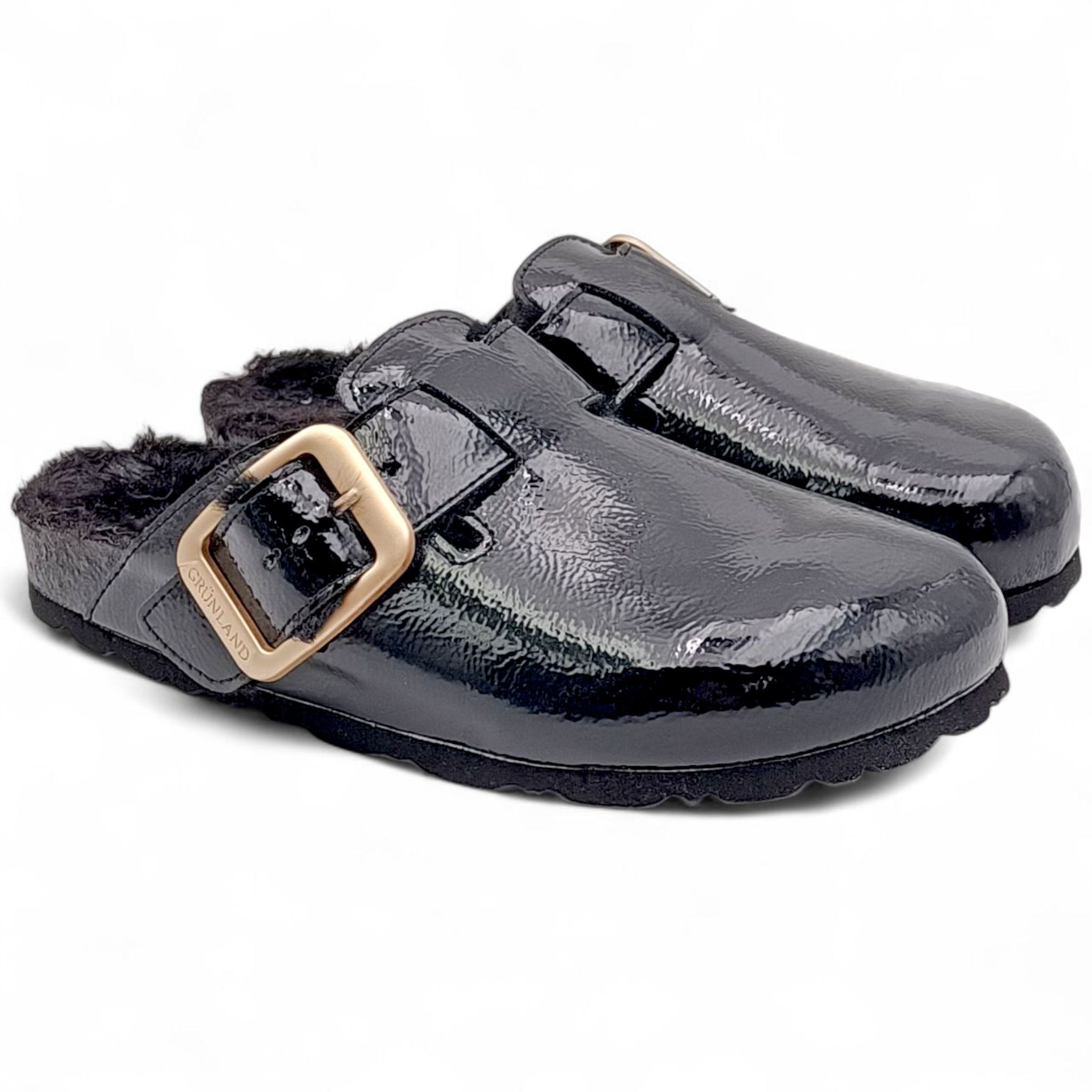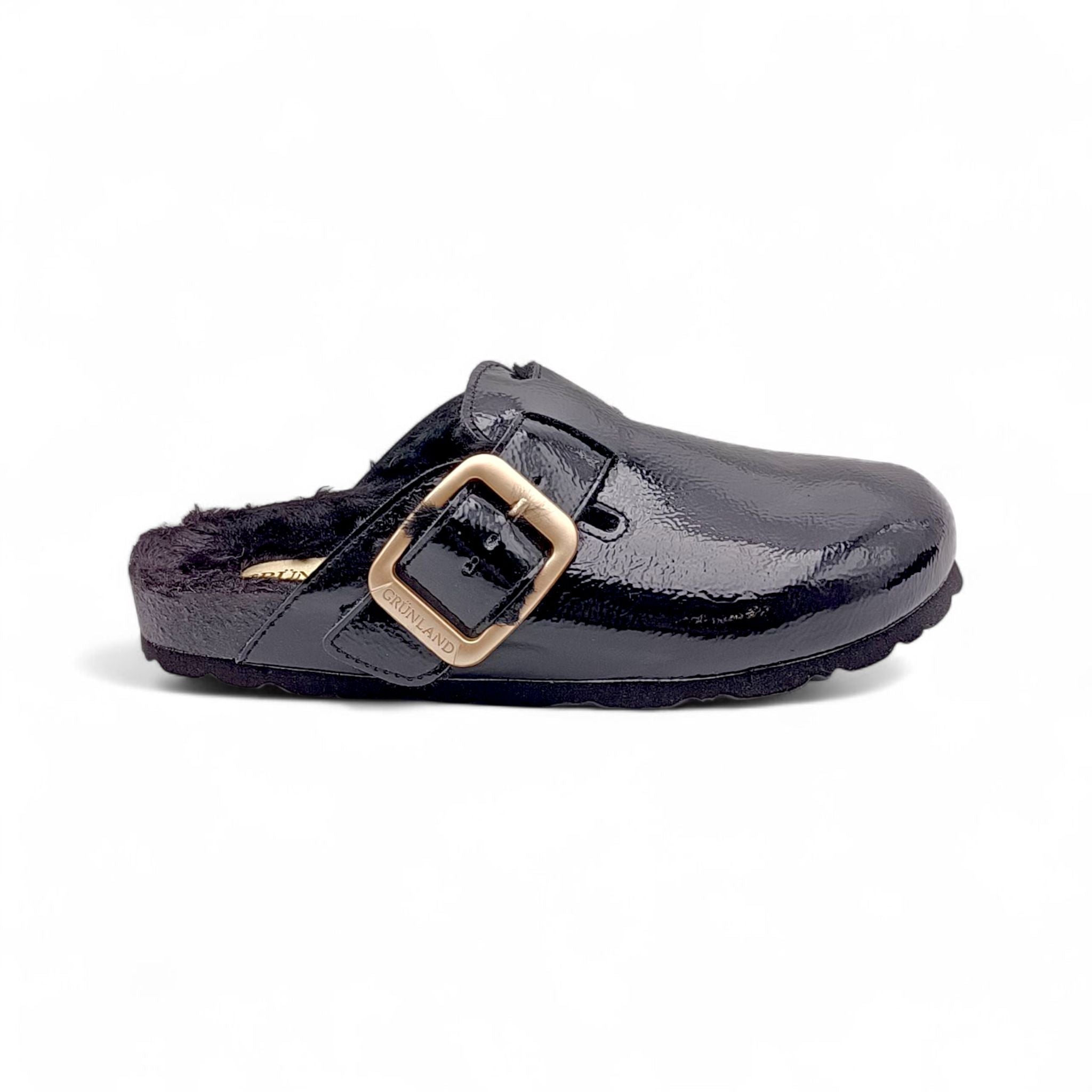 Sabot donna con pelo in vernice lucida nera Grunland SARA Cb0791 40