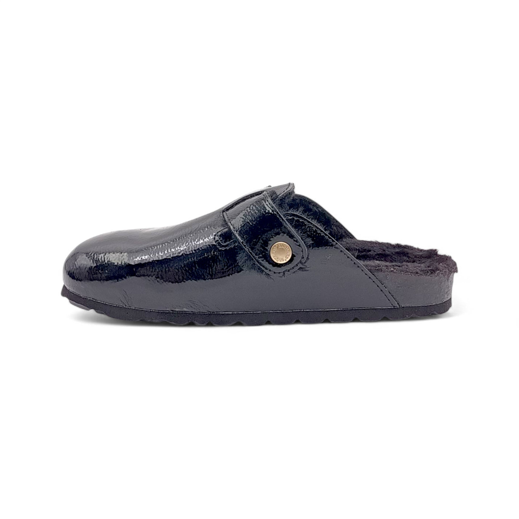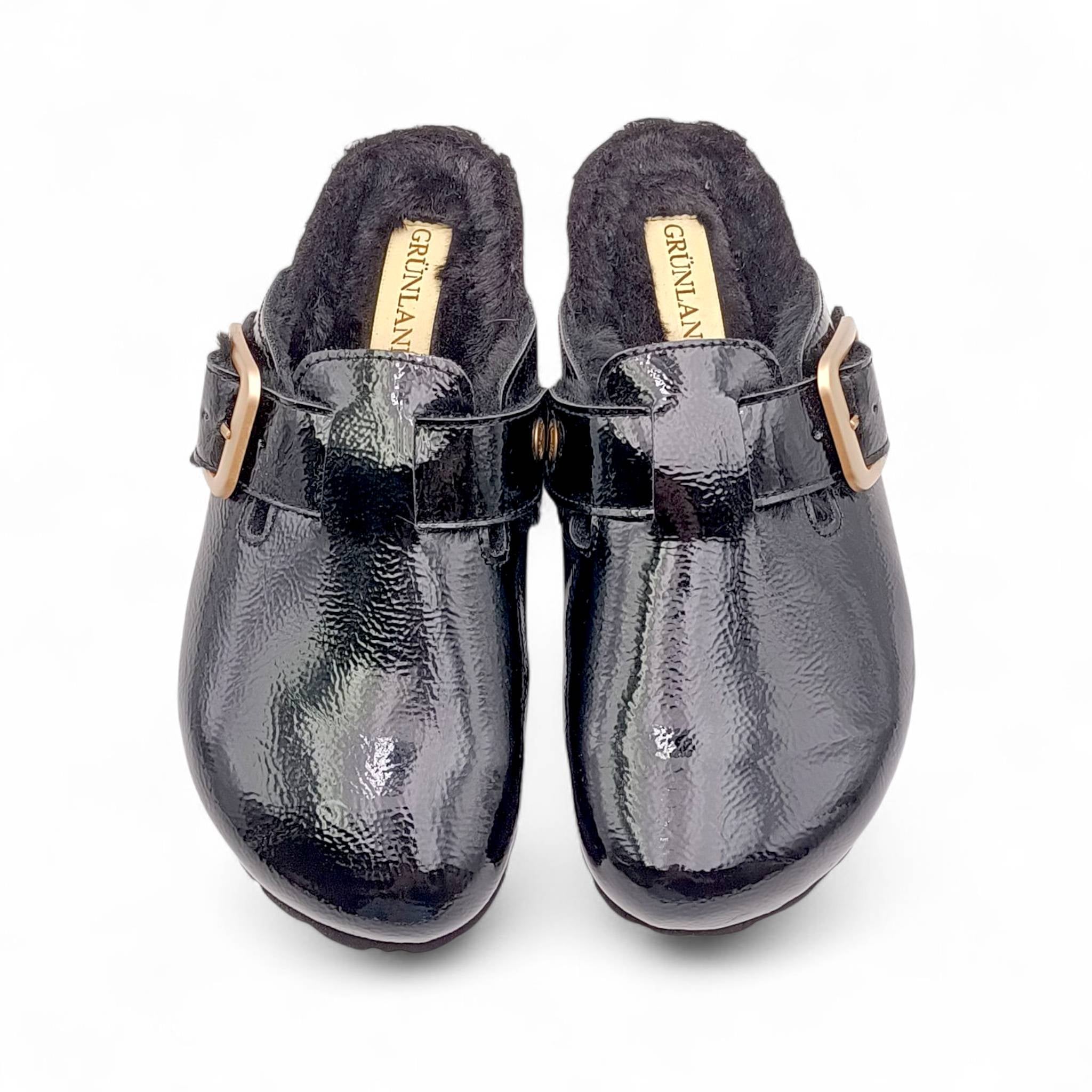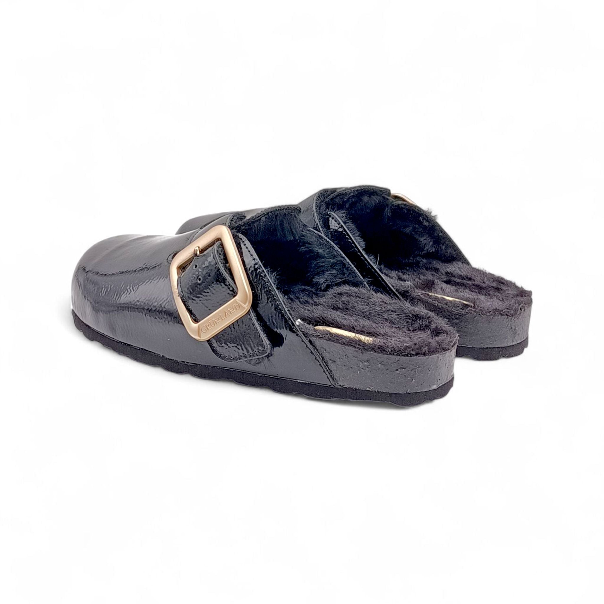 Sabot donna con pelo in vernice lucida nera Grunland SARA Cb0791 40
