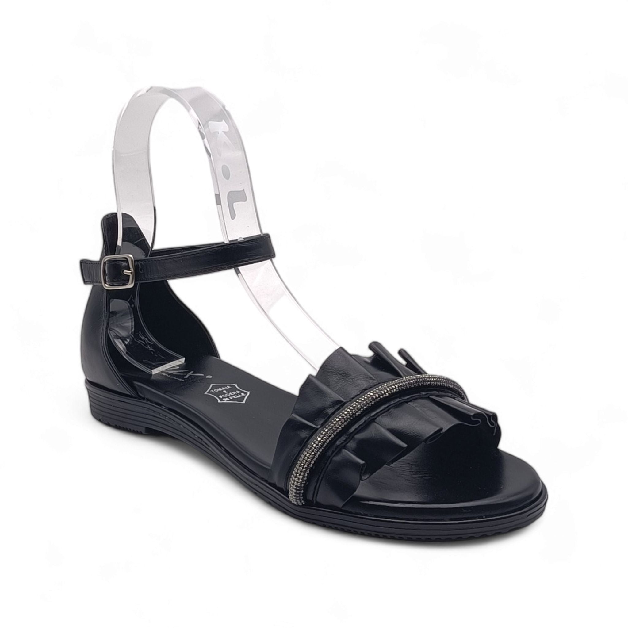 Sandalo Donna in pelle con strass Lux 3058 NERO