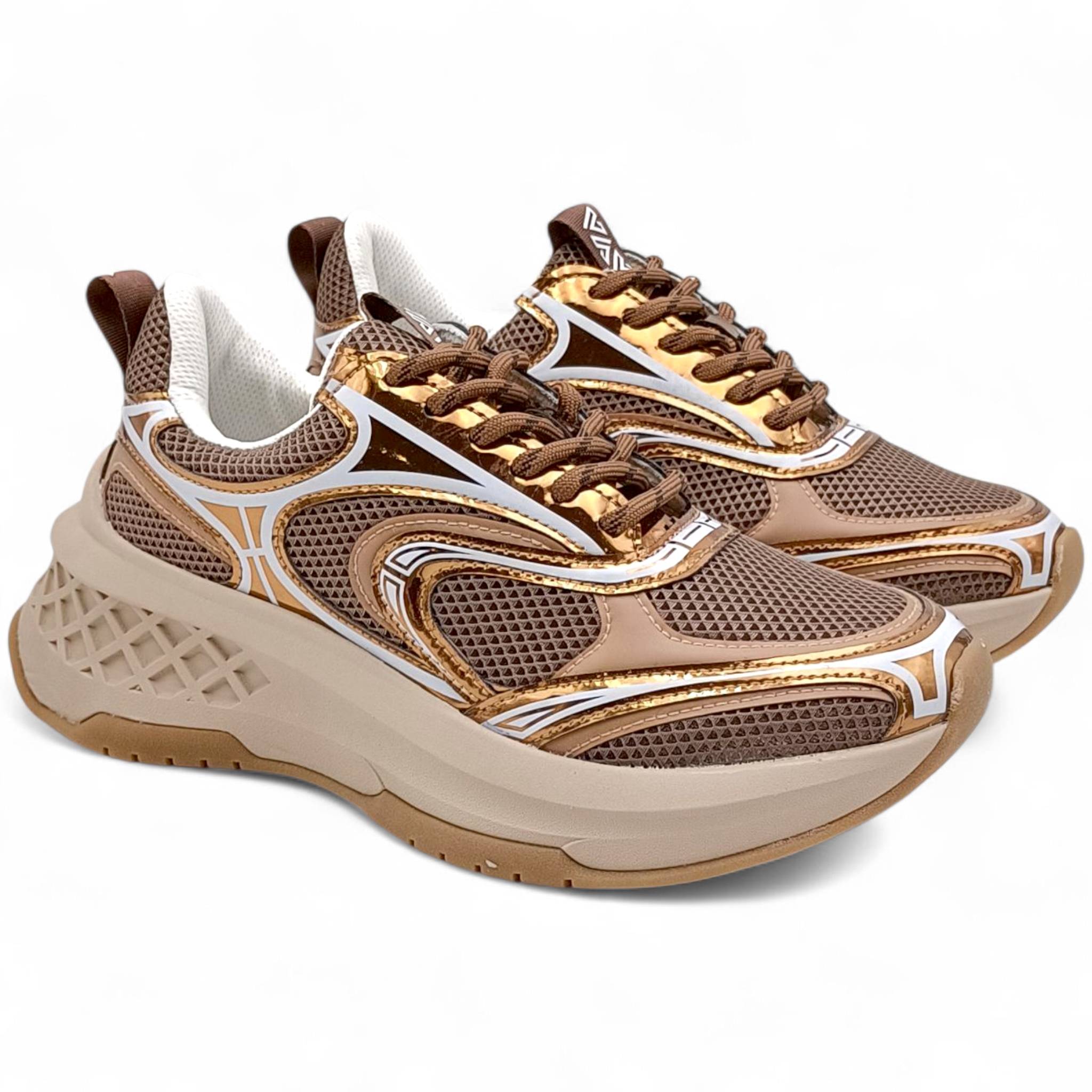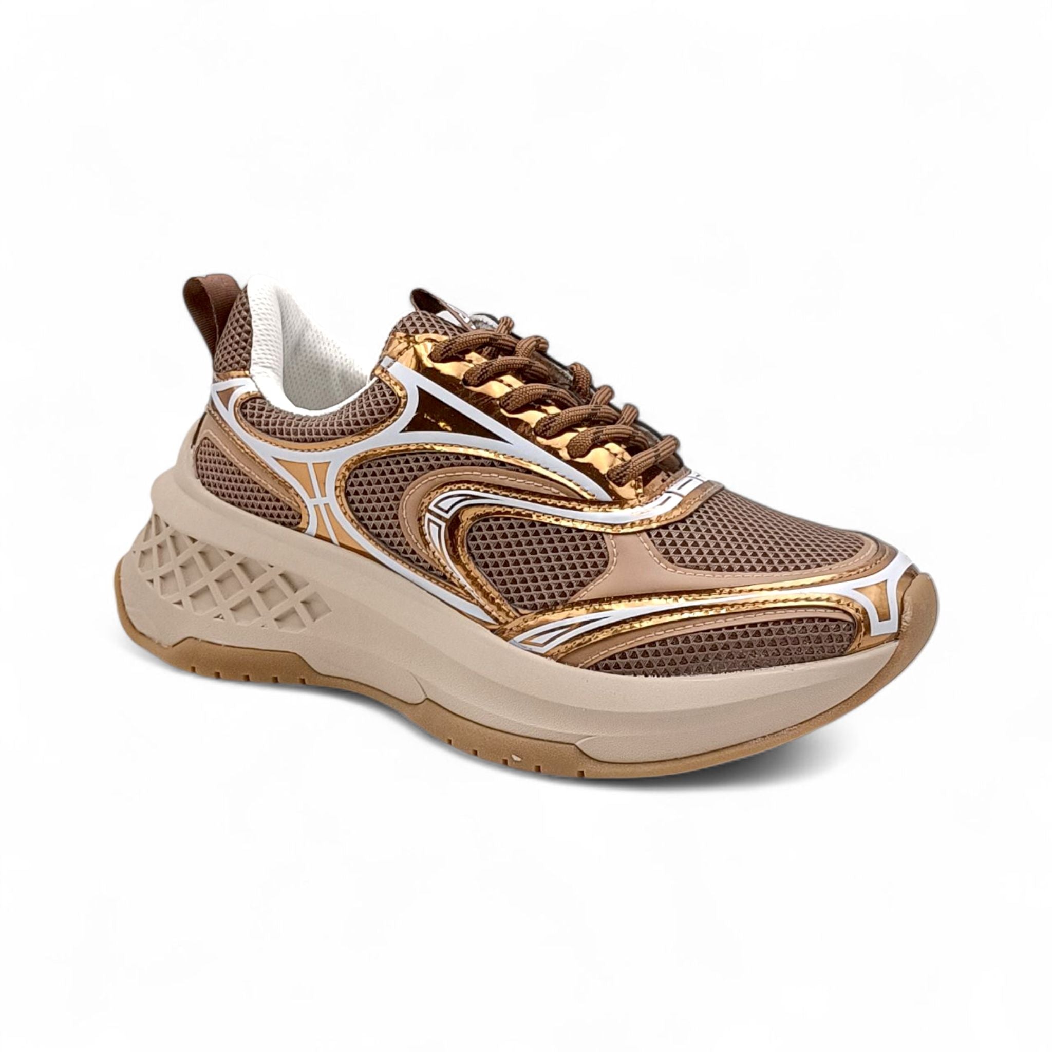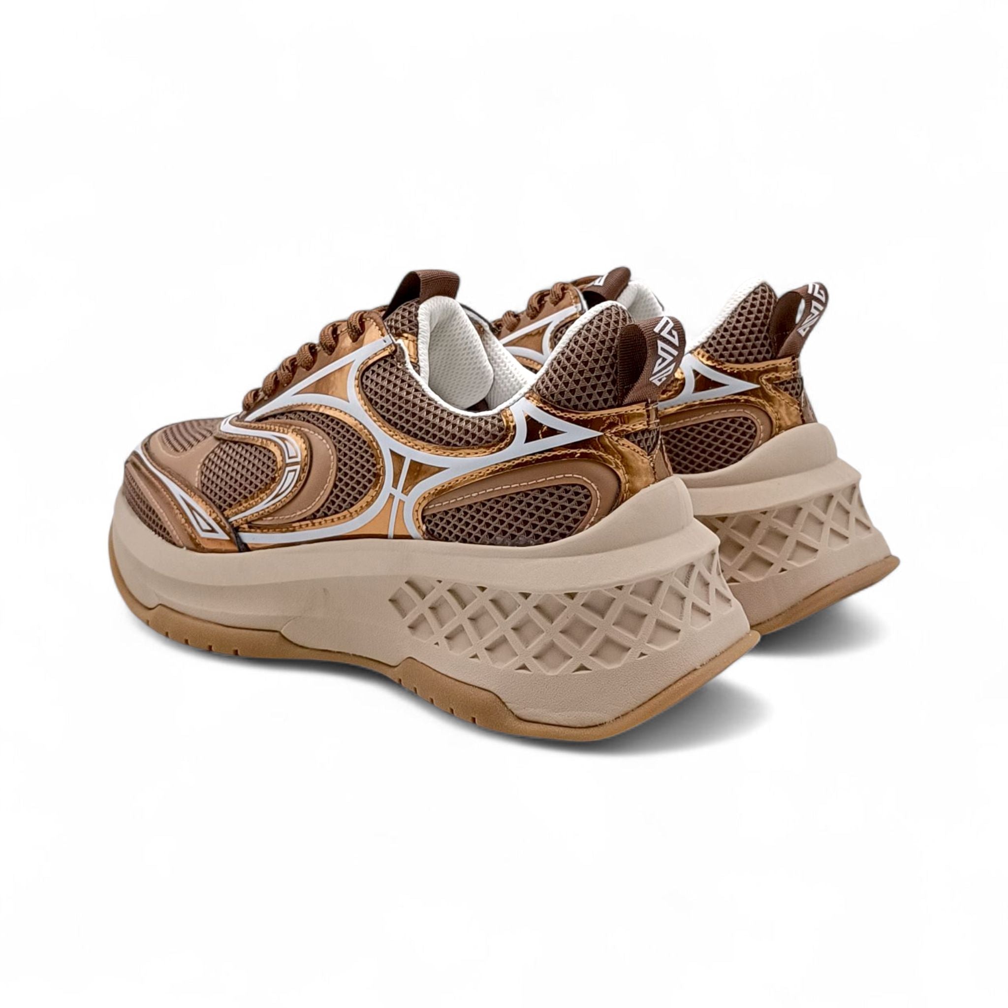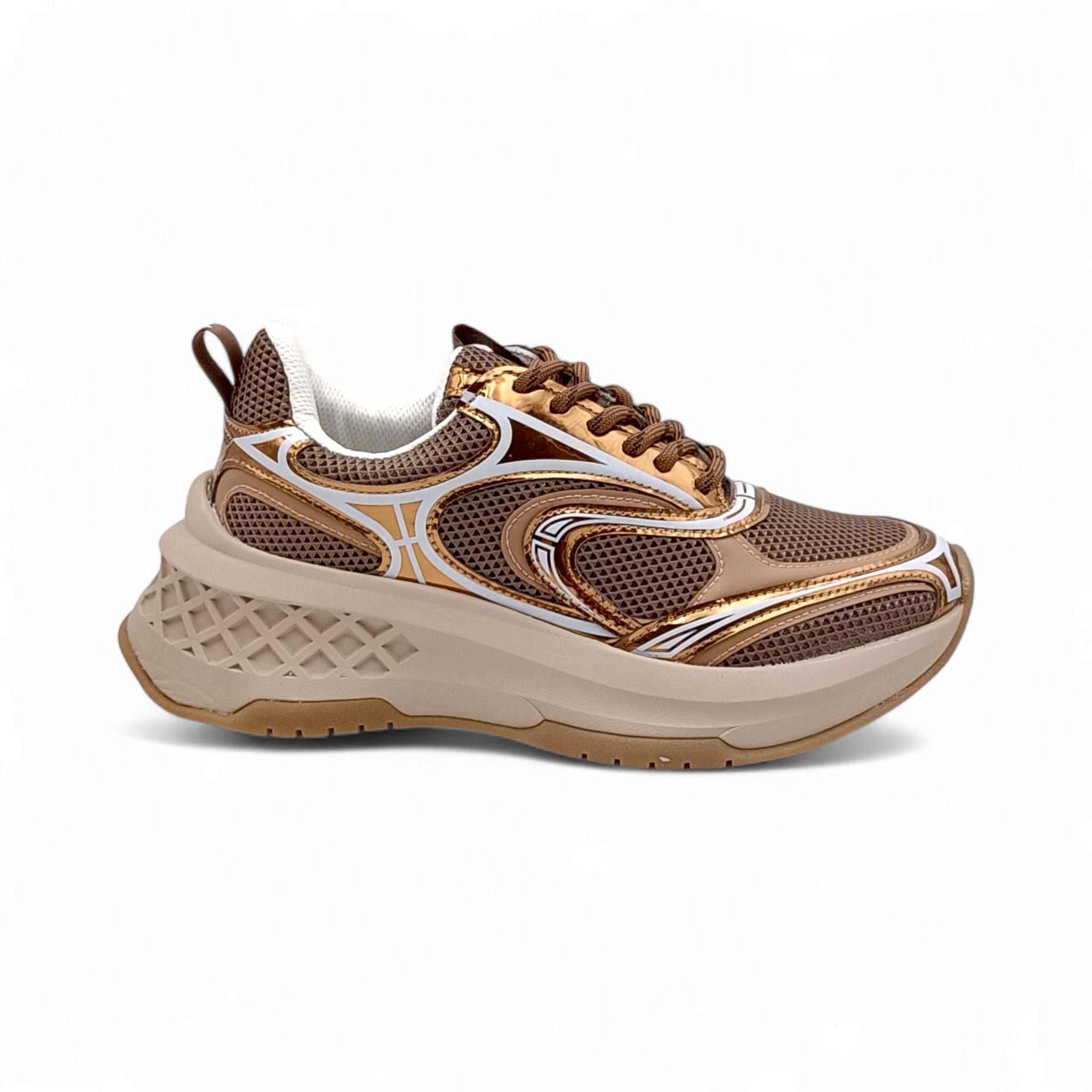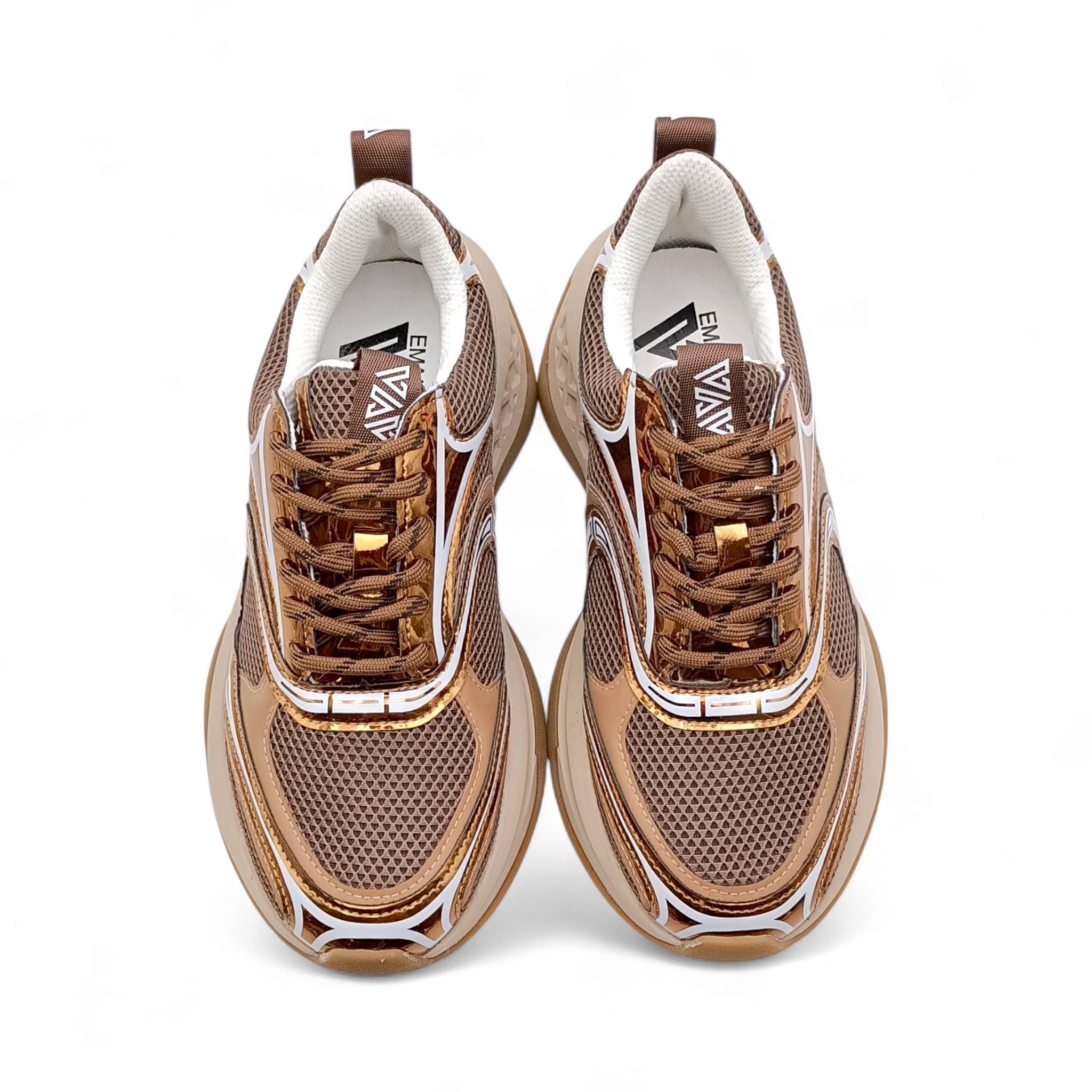 Sneaker donna con platform in pelle e tessuto bronzo Emanuelle Vee 452P-504-10-T16