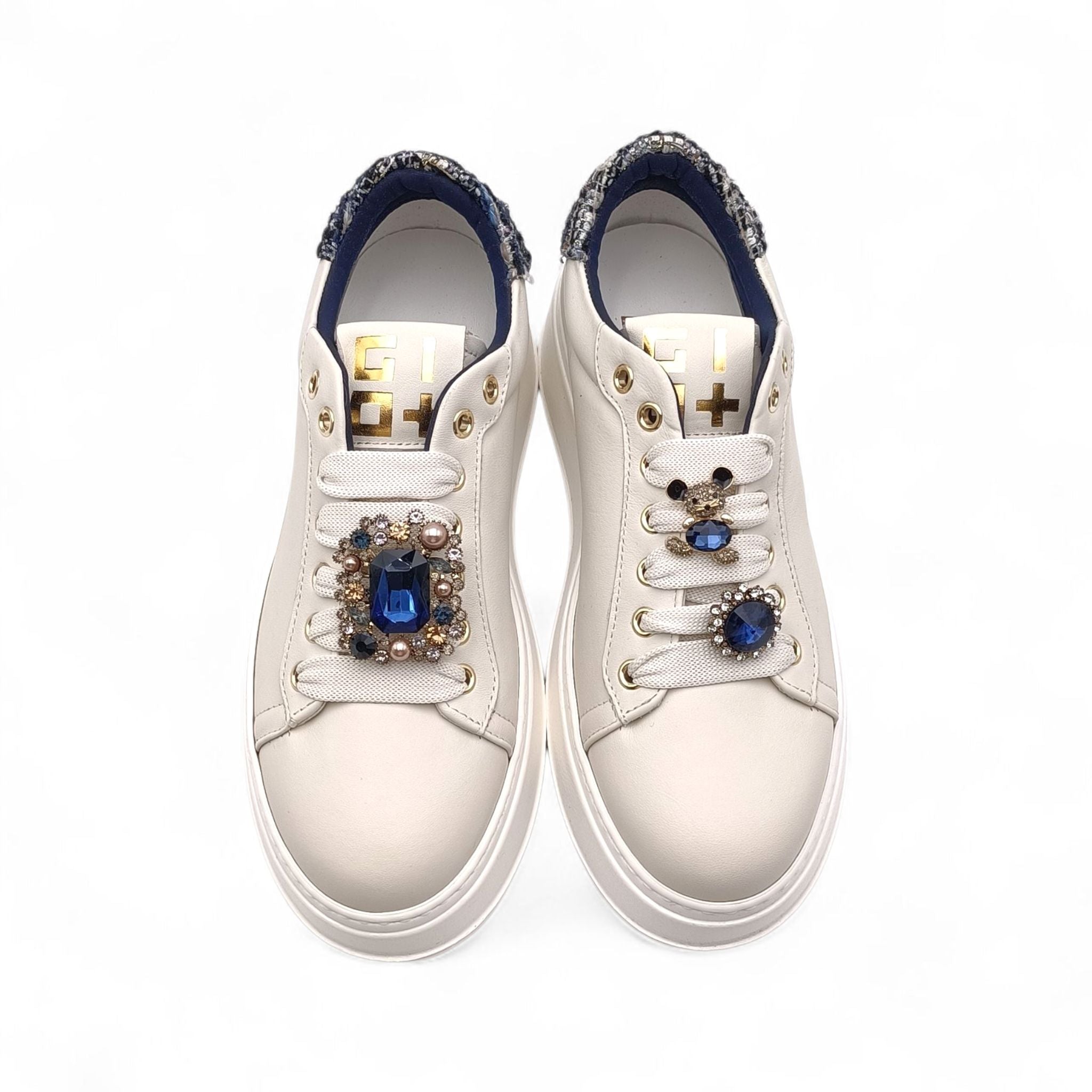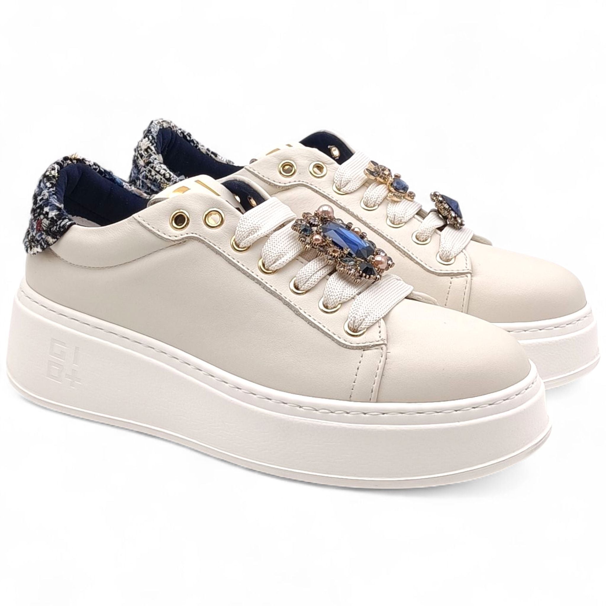 Sneaker donna in pelle color panna e accessori Gio+ PIA424A