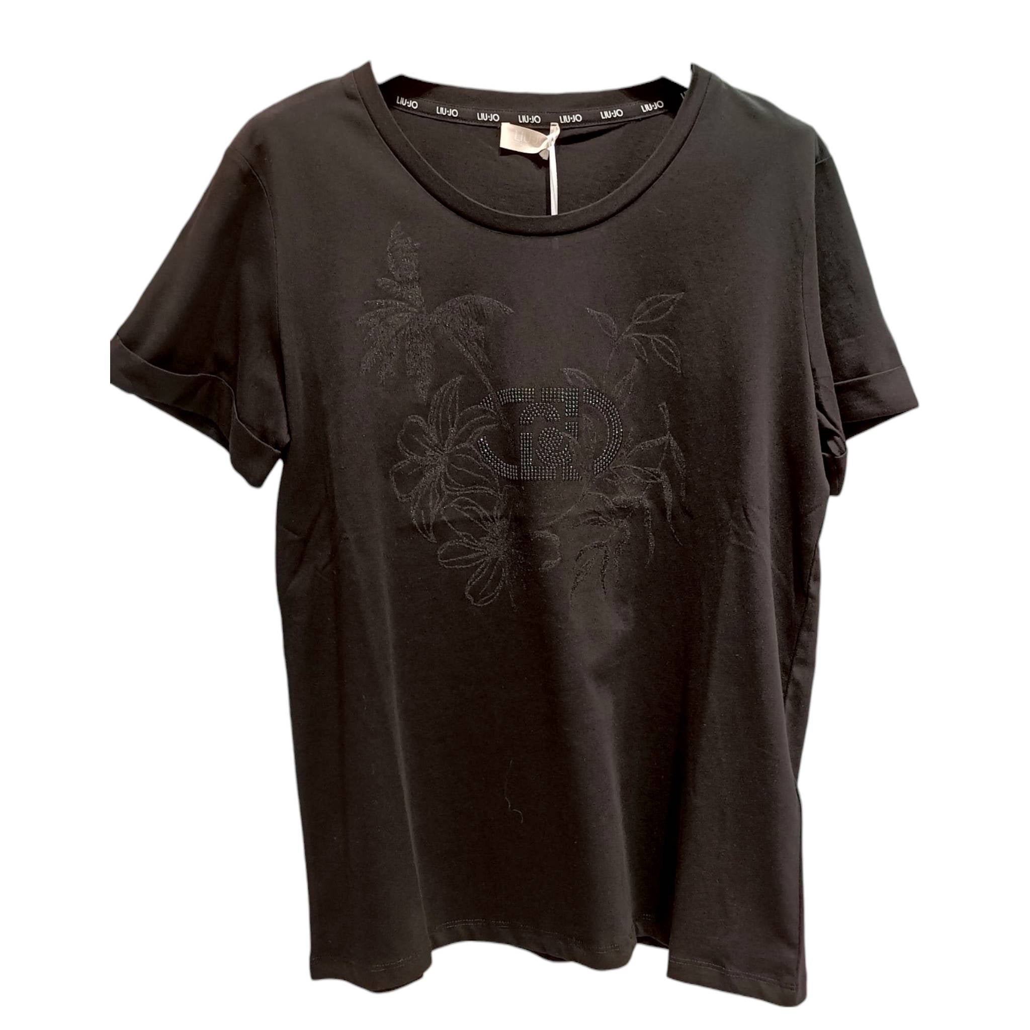 T shirt donna Liu jo TA5180JS923 M9249 nero lj flowers 251